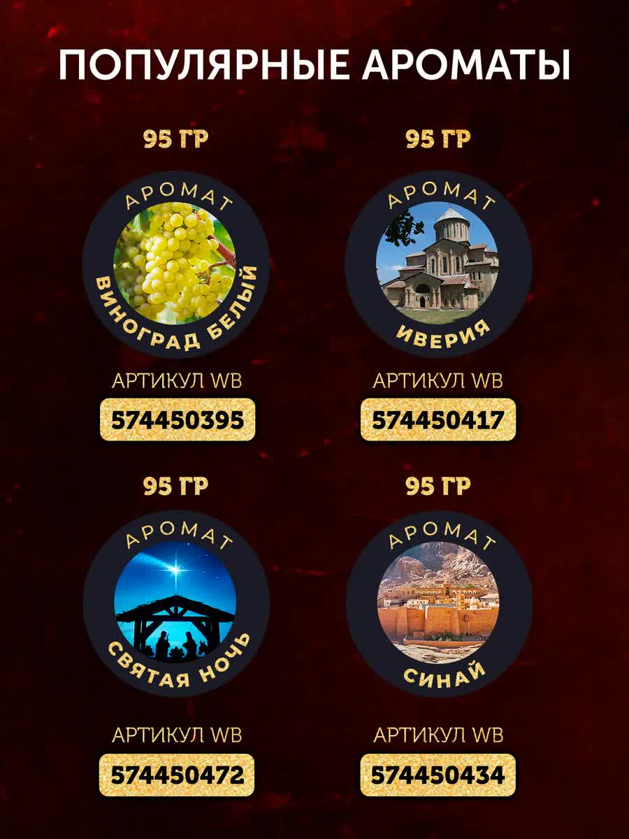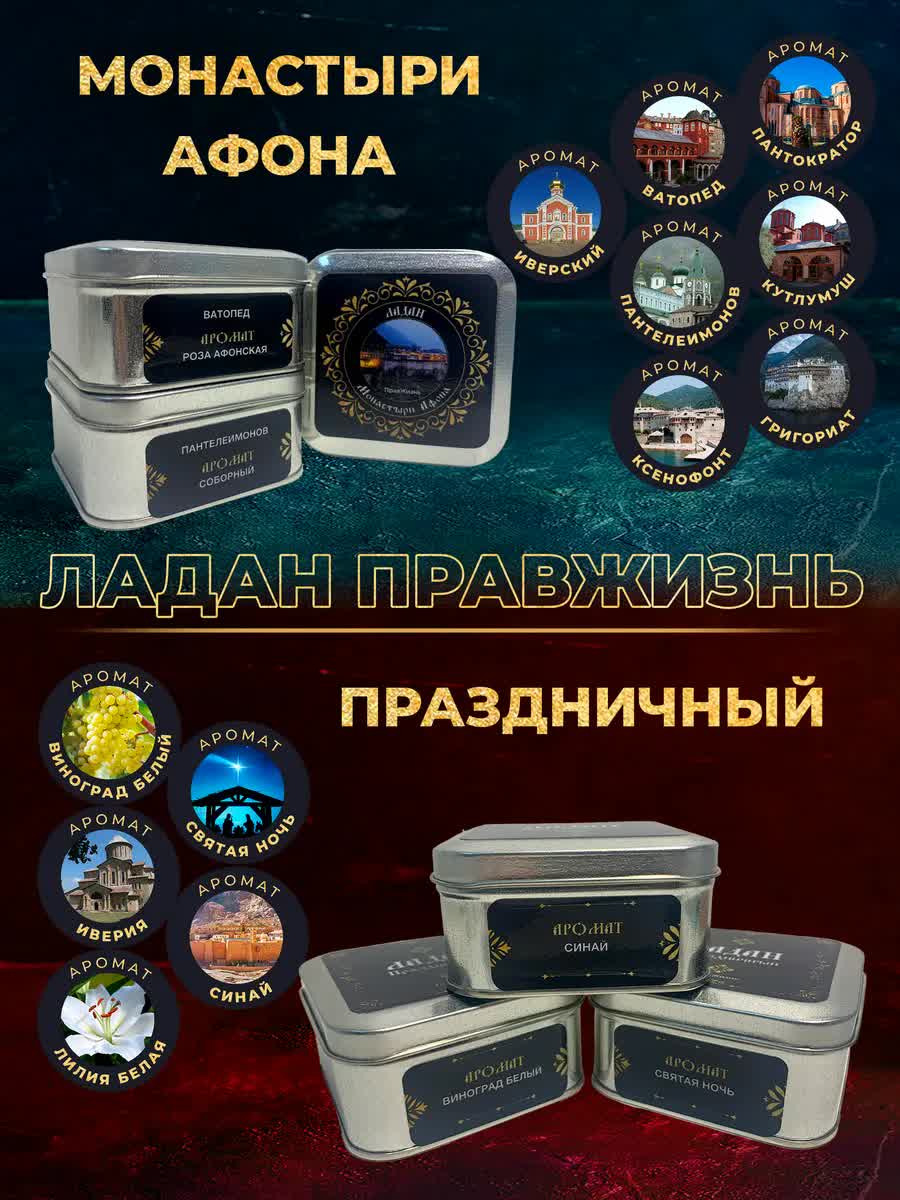 Ладан "Монастыри Афона и Праздничный": 12 ароматов по 15 гр