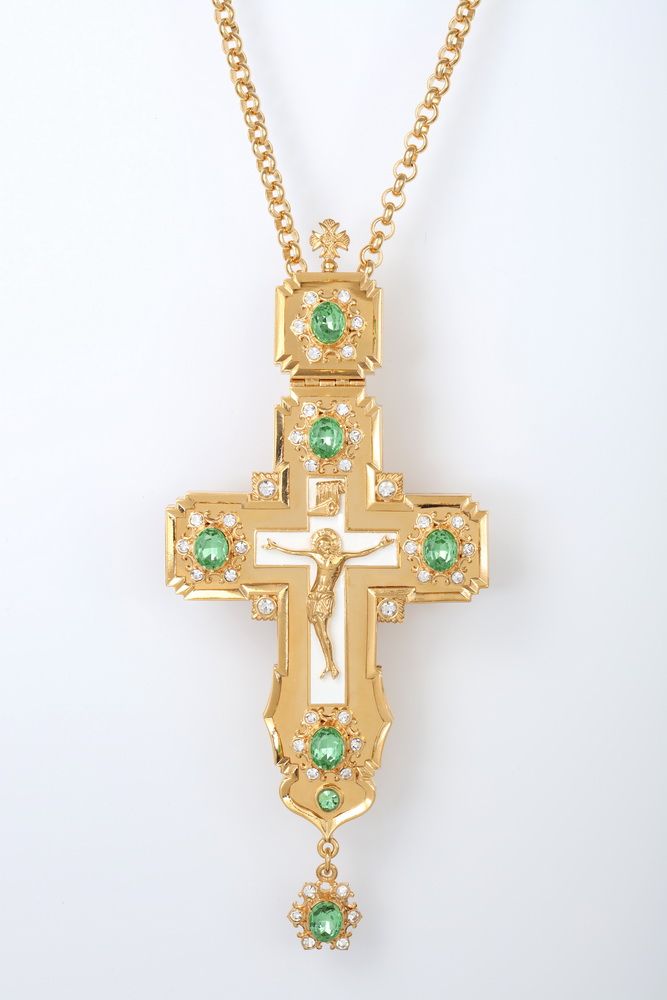 Крест наперсный № 106 литьевое распятие,эмаль /золочение/