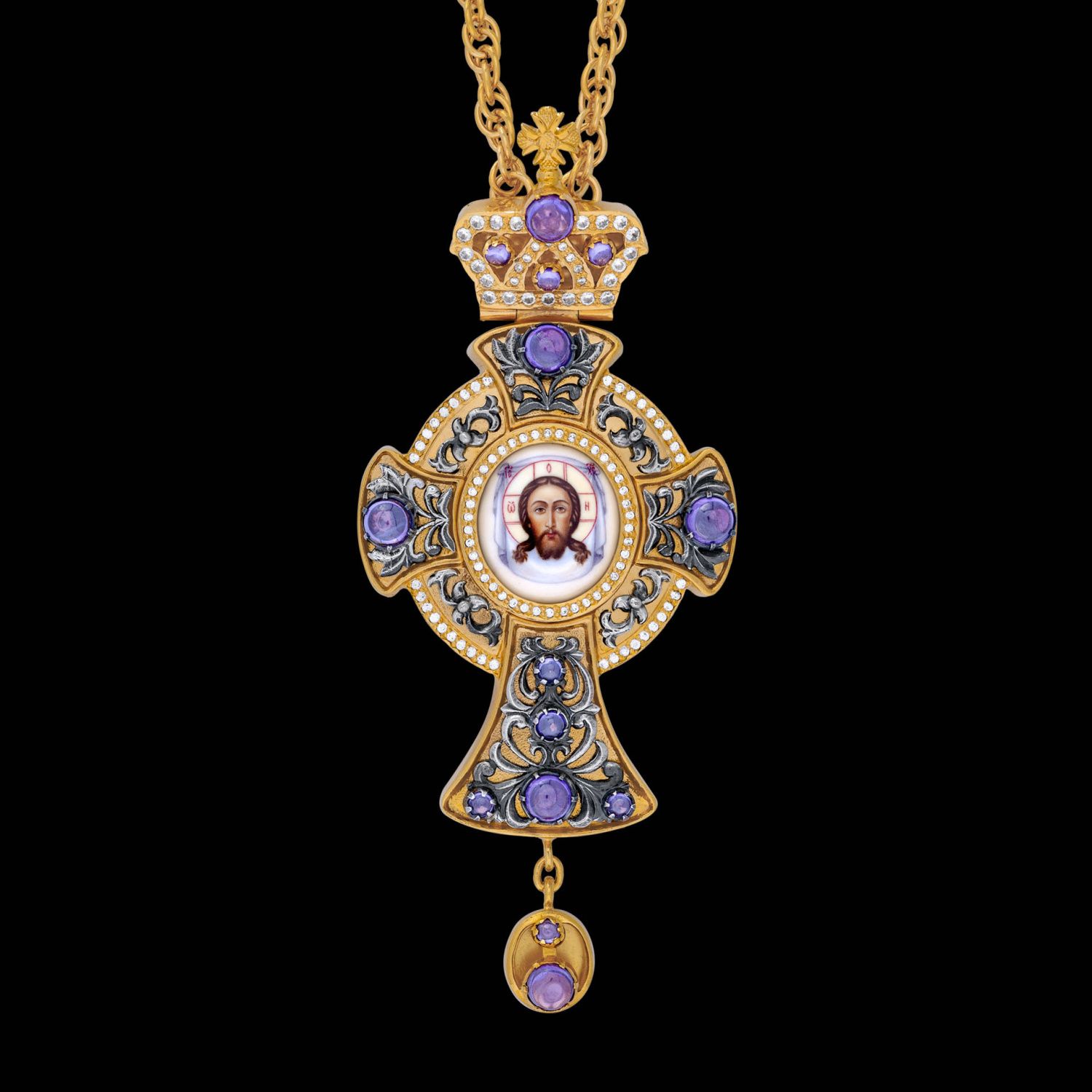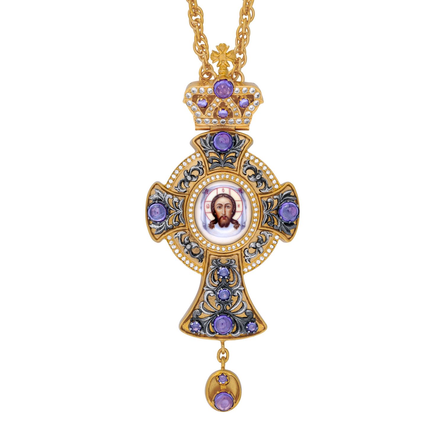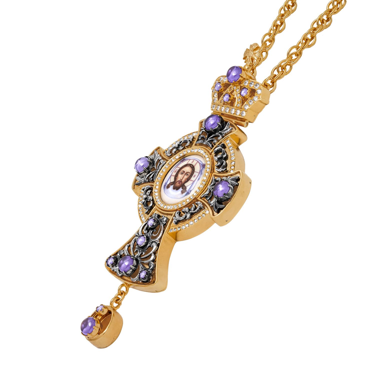 Крест наперсный №1449 / Фианиты / золочение, серебрение