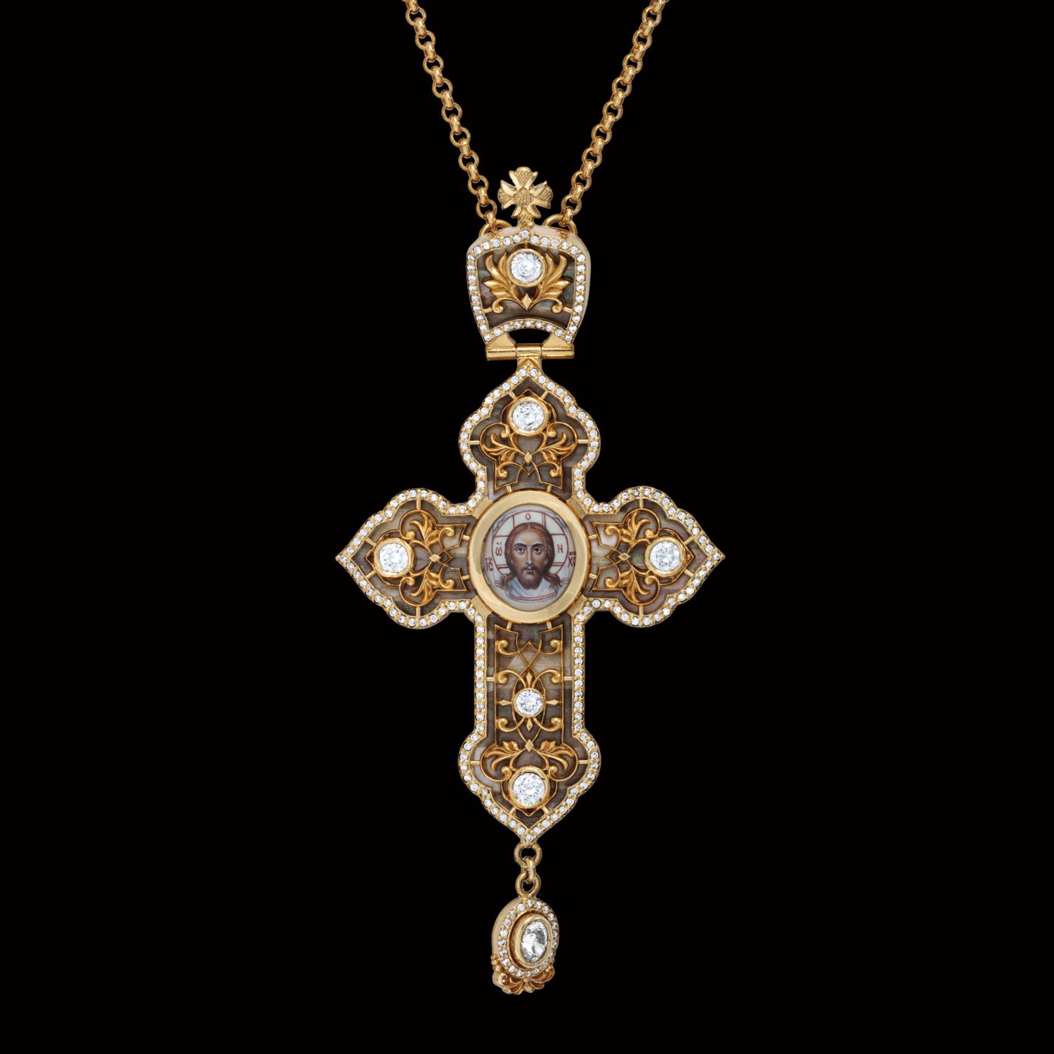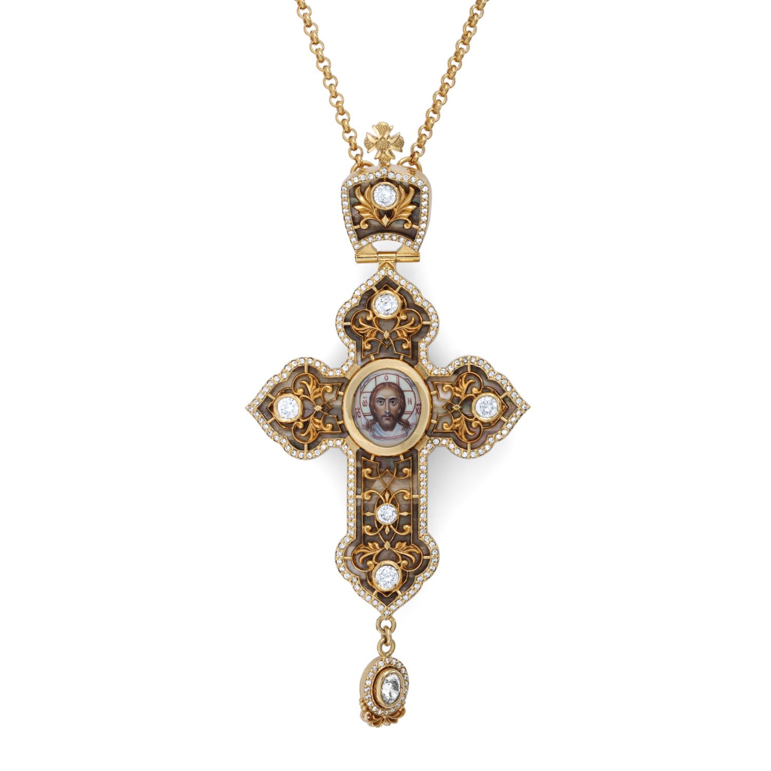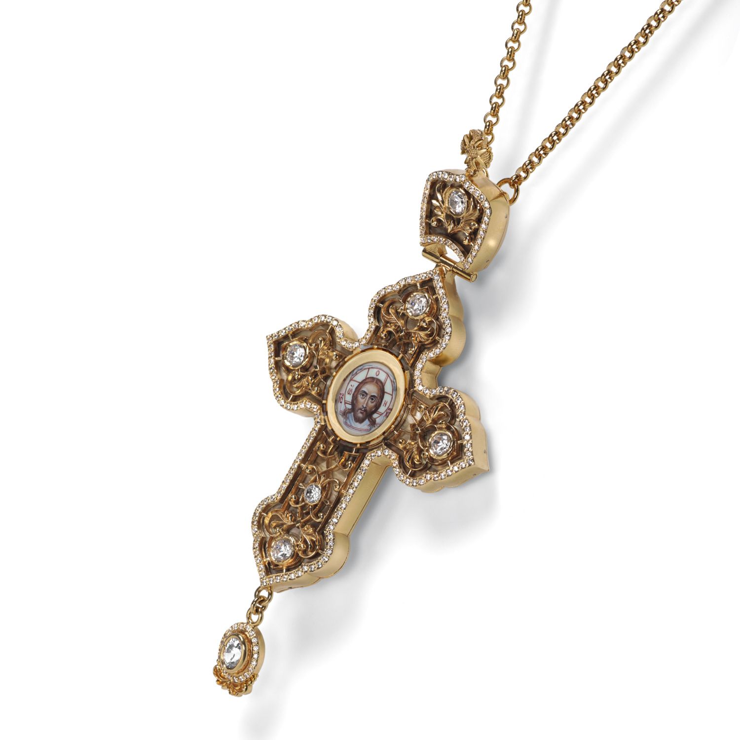 Крест наперсный №1524 / Фианиты / перламутр / золочение