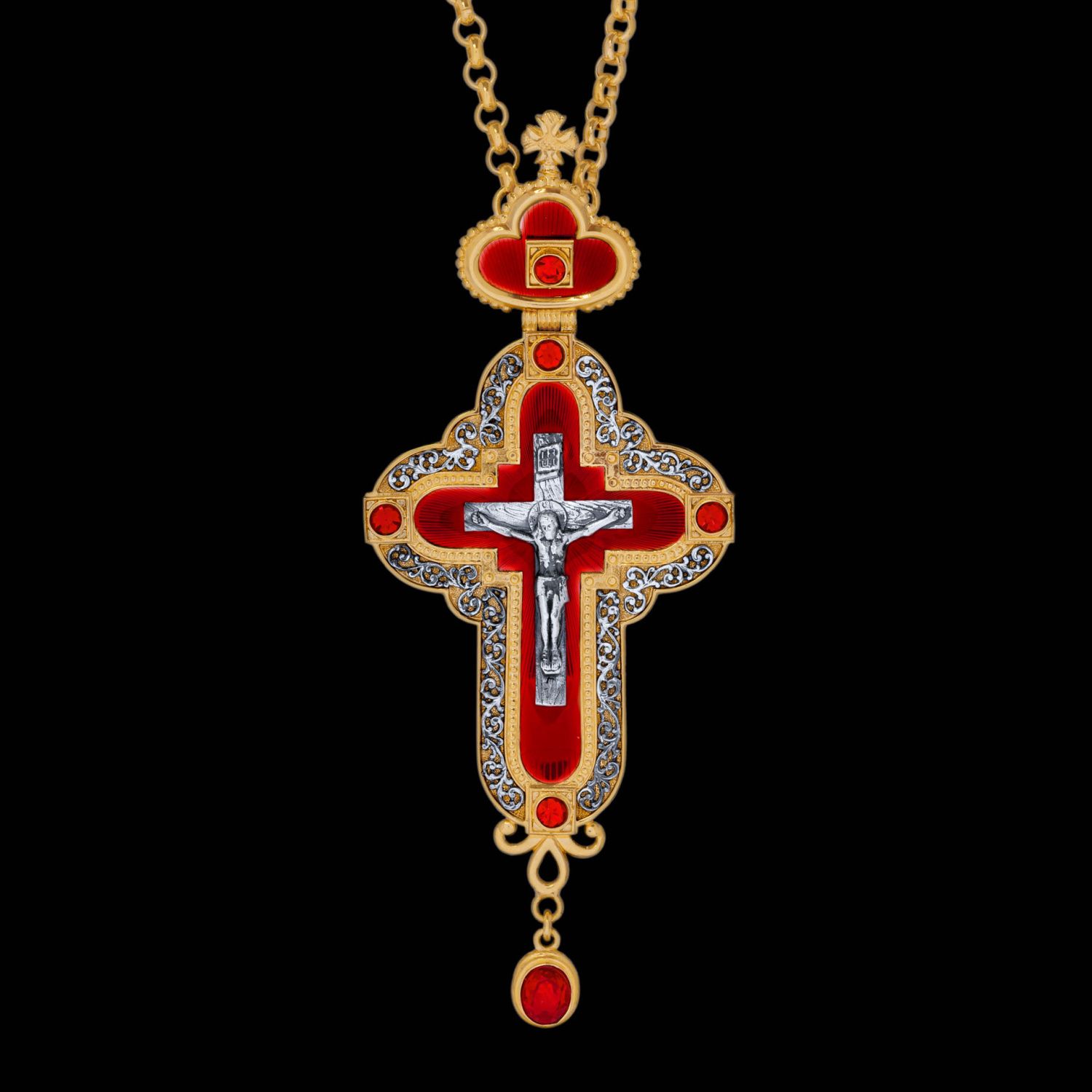 Крест наперсный №155 гильяш, эмаль / золочение, серебрение