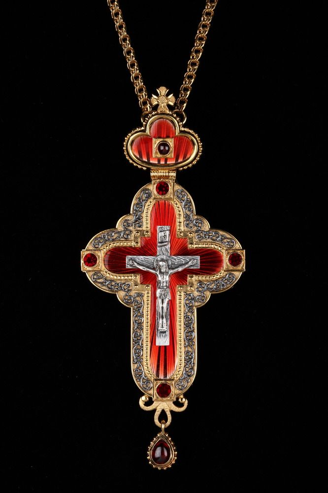 Крест наперсный №155 / золочение / серебро эмаль, гильяш (УИН)