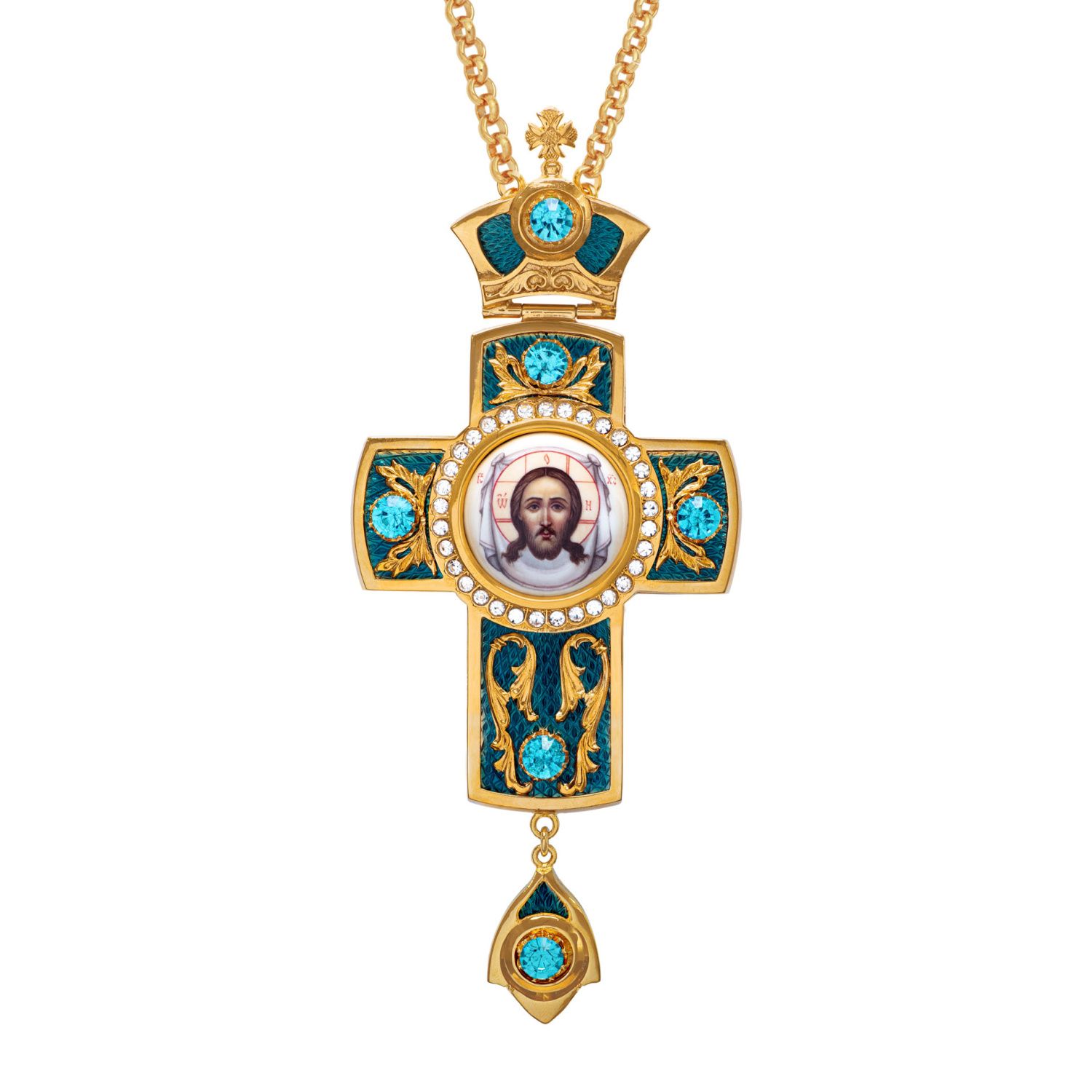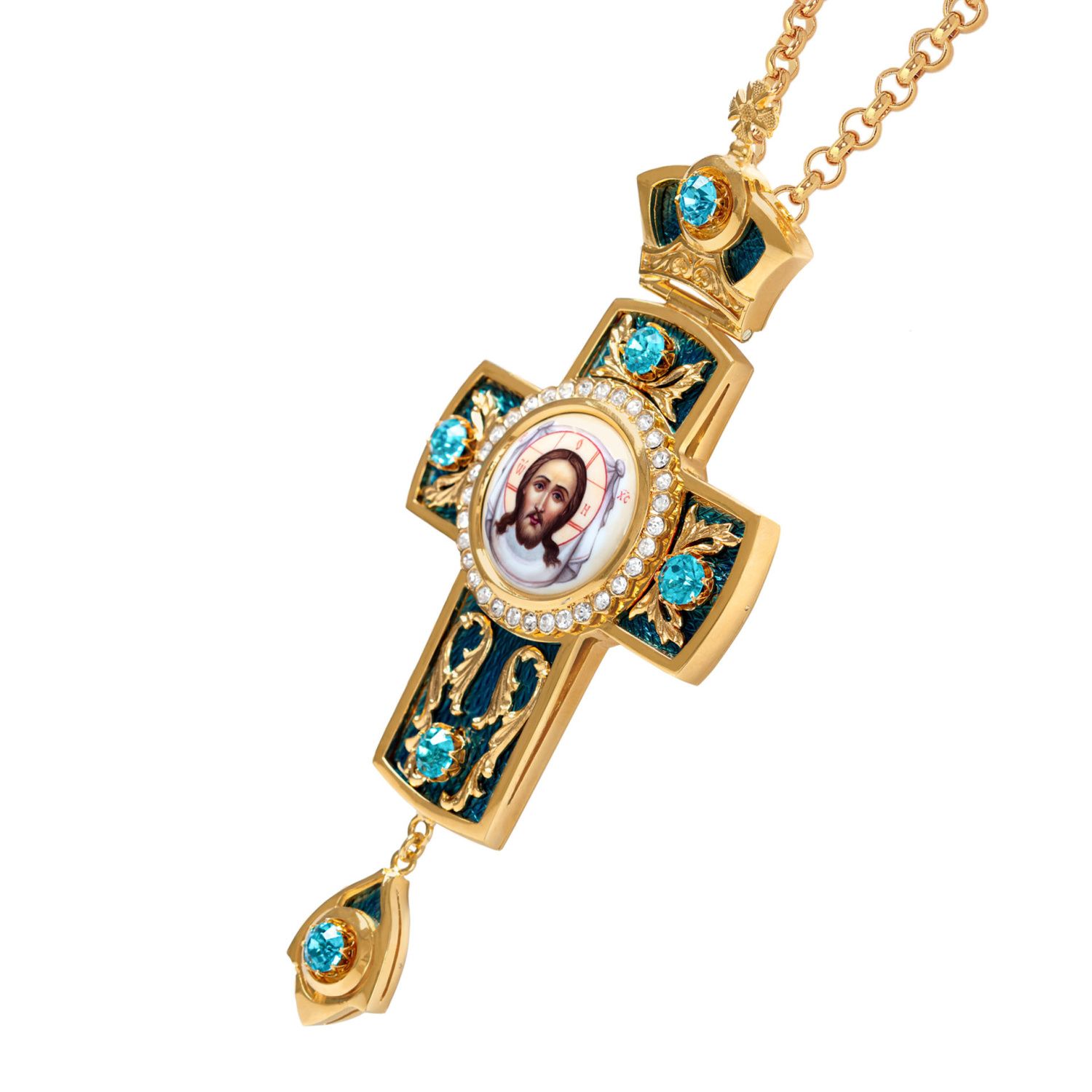 Крест наперсный №38 эмаль финифть / круглая / золочение