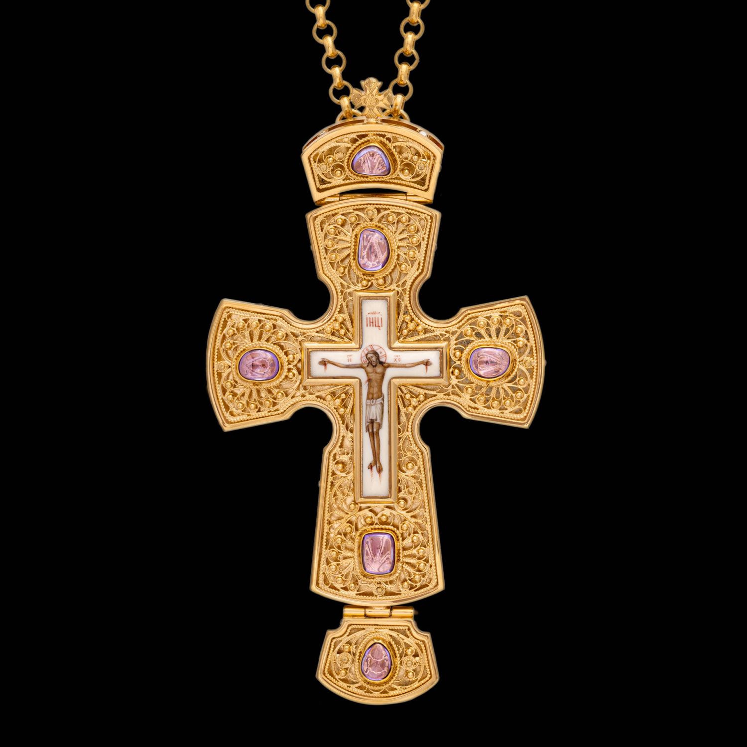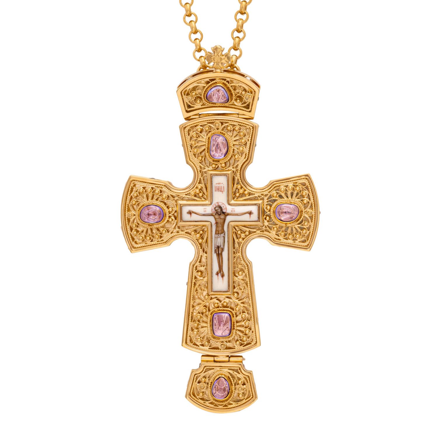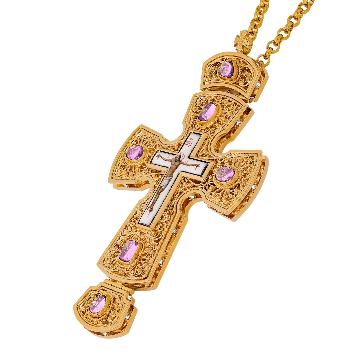 Крест наперсный филигрань №0010 / Фианиты двойной рант финифть / золочение