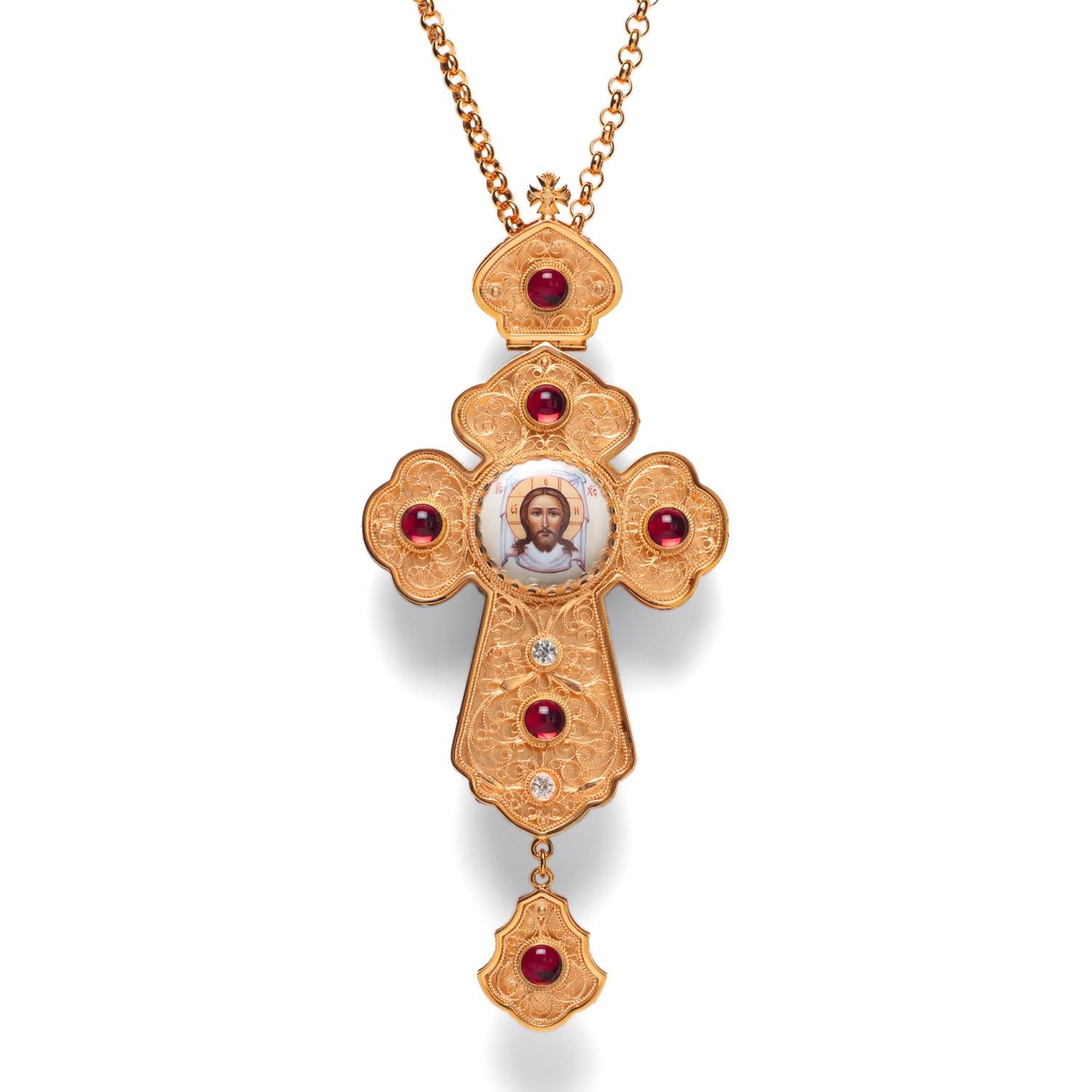 Крест наперсный филигрань №0012 двойной рант финифть / золочение