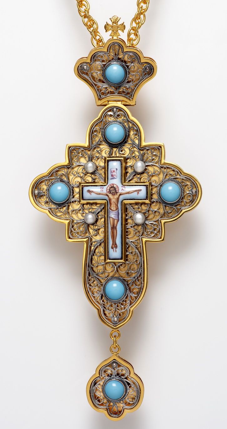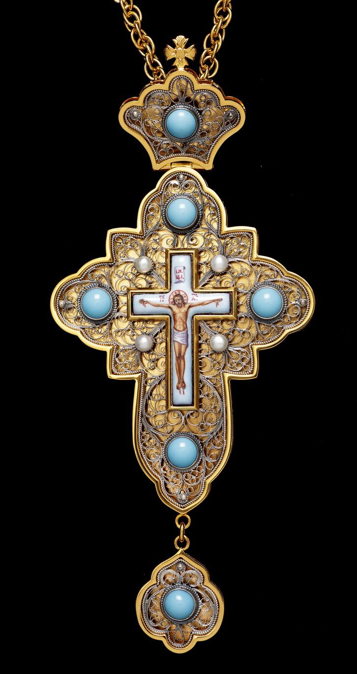 Крест наперсный филигрань №0019 двойной рант финифть / золочение, серебрение