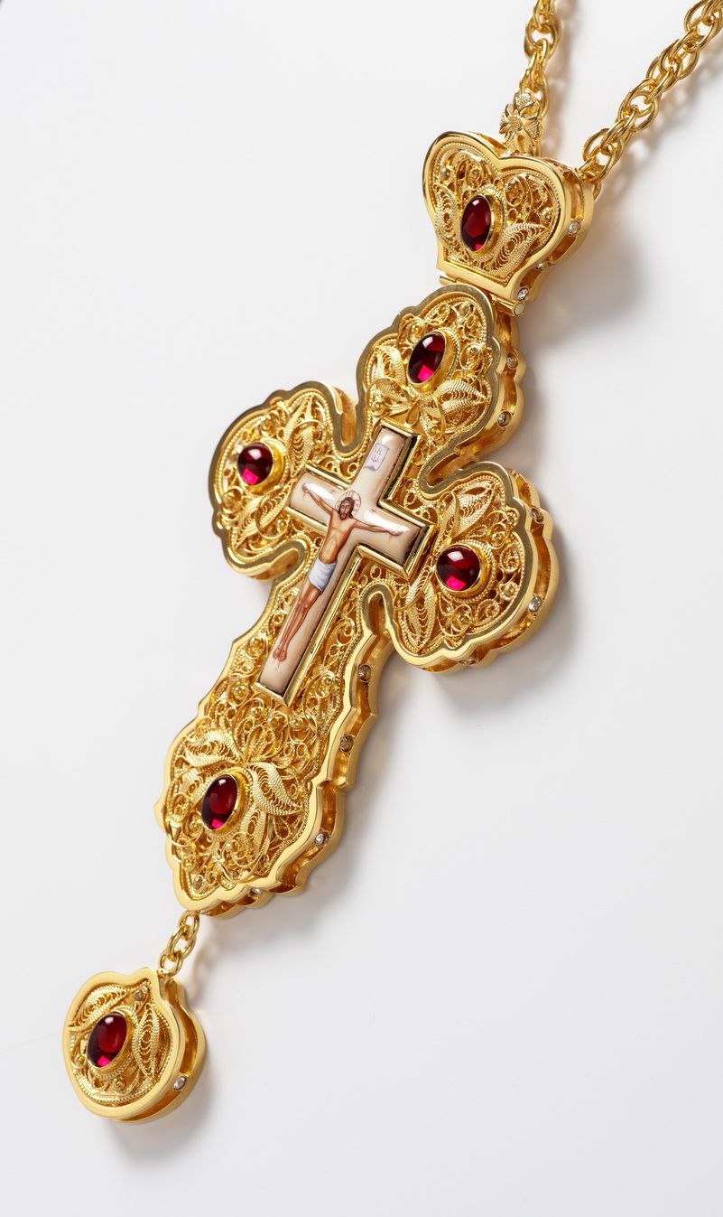 Крест наперсный филигрань №0022 двойной рант финифть / золочение