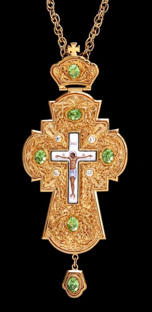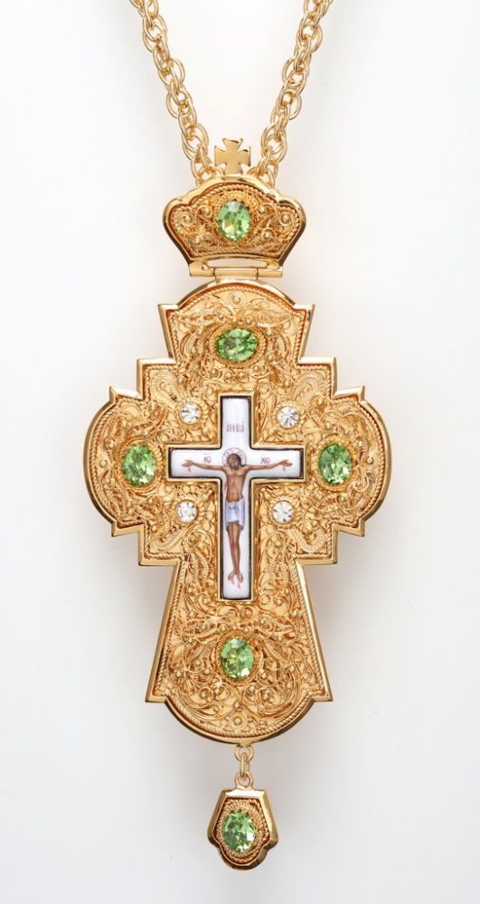 Крест наперсный филигрань №0027 одинарный рант, узор, финифть / золочение