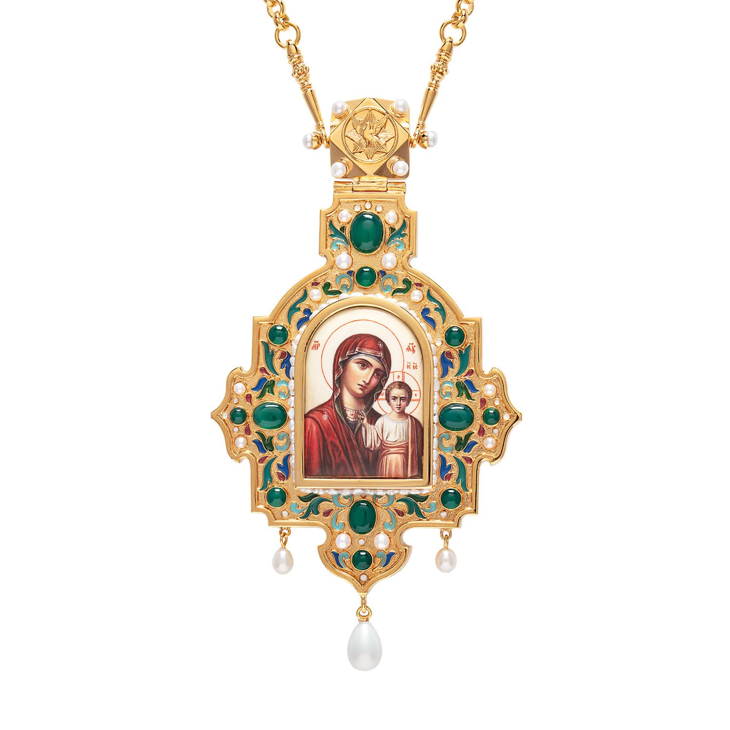 Панагия №1415 / Фианиты деколь, эмаль / золочение / Казанская БМ