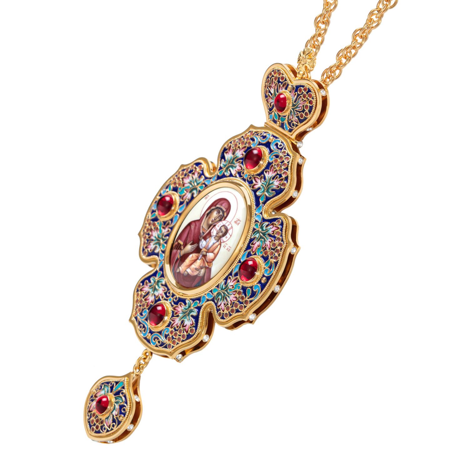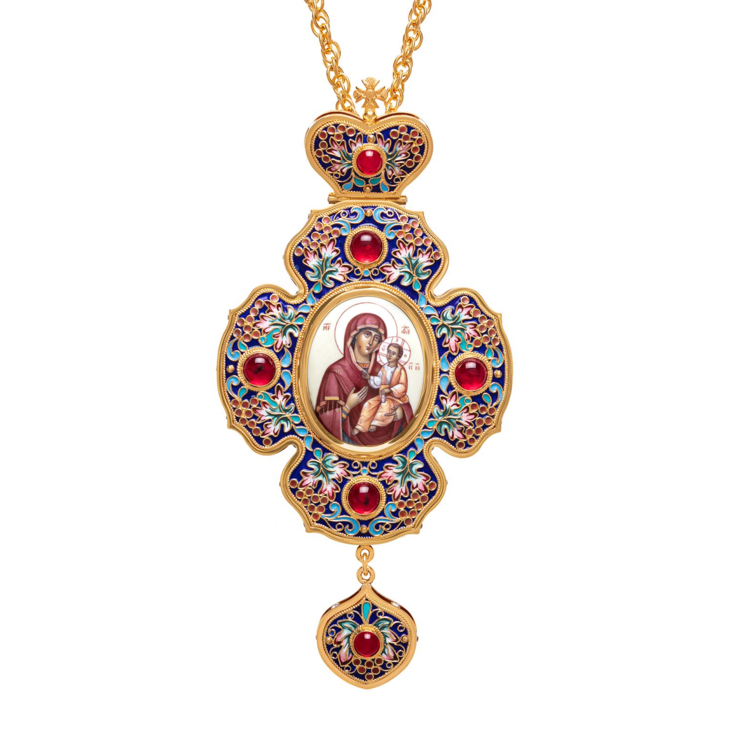 Панагия филигрань №0017 двойной рант, эмаль, роспись, финифть / золочение / Иверская БМ