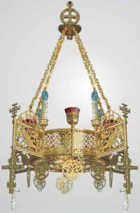 Паникадило 1 ярус 4 свечи золочение можно отнести к обыкновенному осветительному прибору, каковой используется для освещения внутри помещения Храма. Изысканное и величественное паникадило не считается торжественным осветительным прибором, который используют только для освящения Церкви. В действительности он содержит в себе сильный и глубокий религиозный смысл. Паникадило содержит в себе символистическое значение Божьего Света, который проливается на всех верующих. Его роль в Храме в действительности, все ж таки его символика создавалась на протяжении многих столетий. Паникадило должен подбираться, принимая к сведению габариты православного Храма, а также он обязан подходить его внутреннему интерьеру. В нашем православном интернет магазине вы в любое время сможете купить паникадила, созданные в превосходнейшем качестве.
