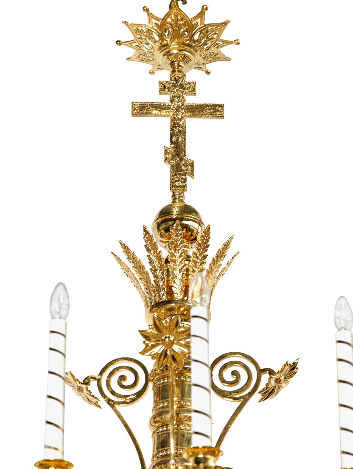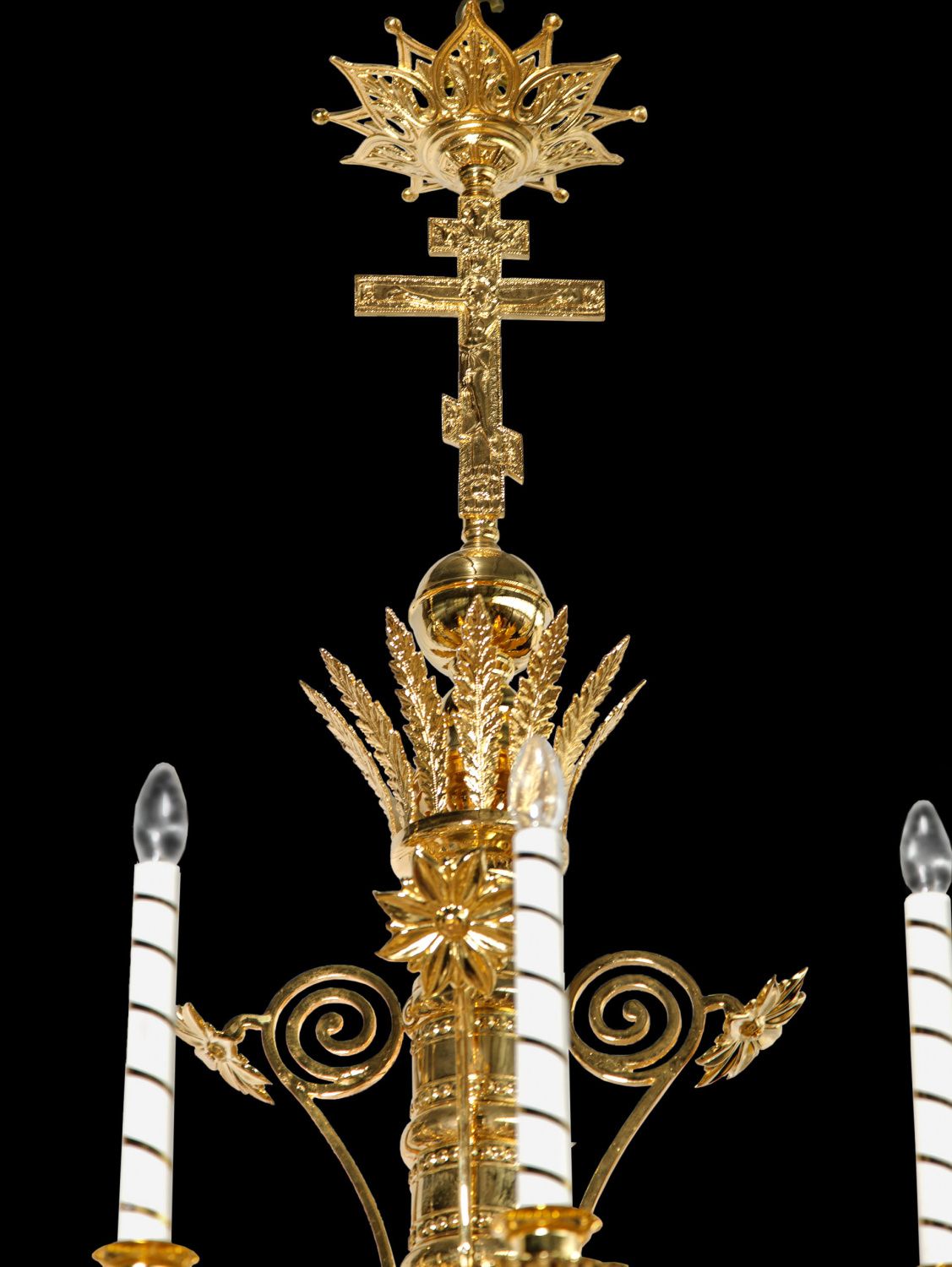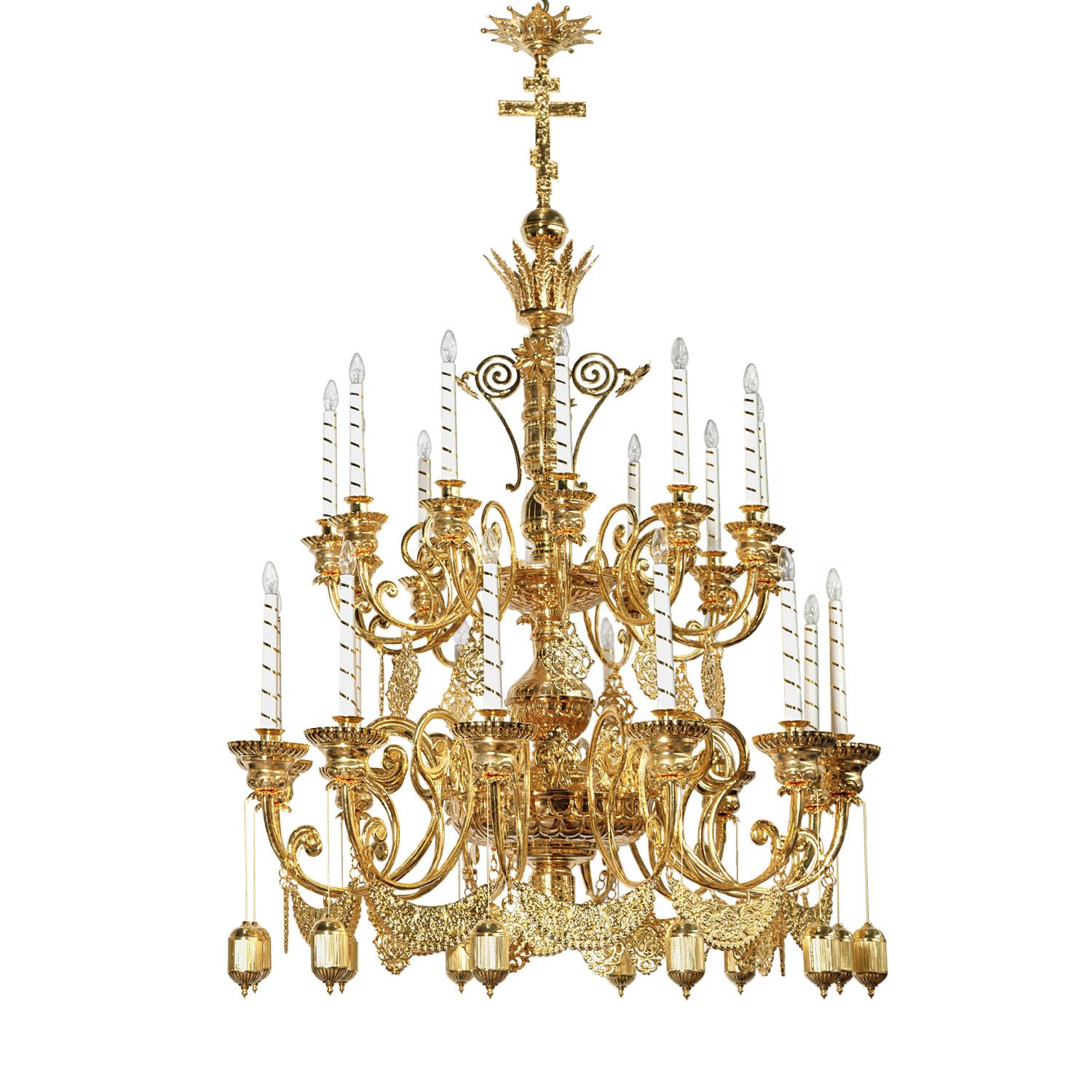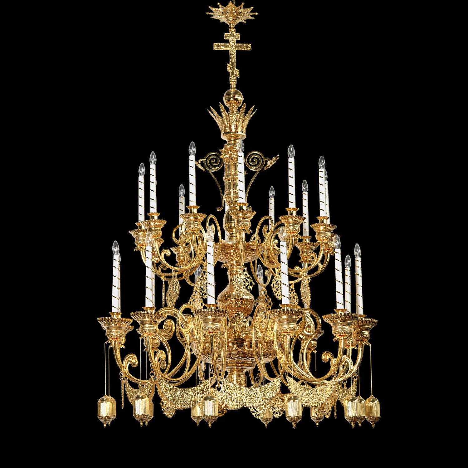 Паникадило 2 яруса 24 свечи (чеканное золочение) можно отнести к обыкновенному осветительному прибору, каковой применяется для освещения внутри помещения Храма. Изысканное и величественное паникадило не значится помпезным осветительным прибором, который используется исключительно для освящения Православного Храма. В действительности он содержит в себе сильный и глубокий религиозный подтекст. Паникадило содержит в себе символистическое значение Божьего Света, который проливается на всех верующих христиан. Его значимость в христианской Церкви в действительности, фактически его символика складывалась в течении многих веков. Паникадило должен выбираться, учитывая размеры Храма, вдобавок он должен соответствовать его внутреннему убранству. В нашем православном онлайн магазине вы всегда можете найти паникадила, выполненные в высочайшем качестве.