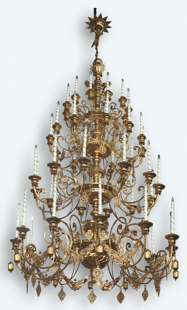 Паникадило 4 яруса 48 свечей чеканное золочение