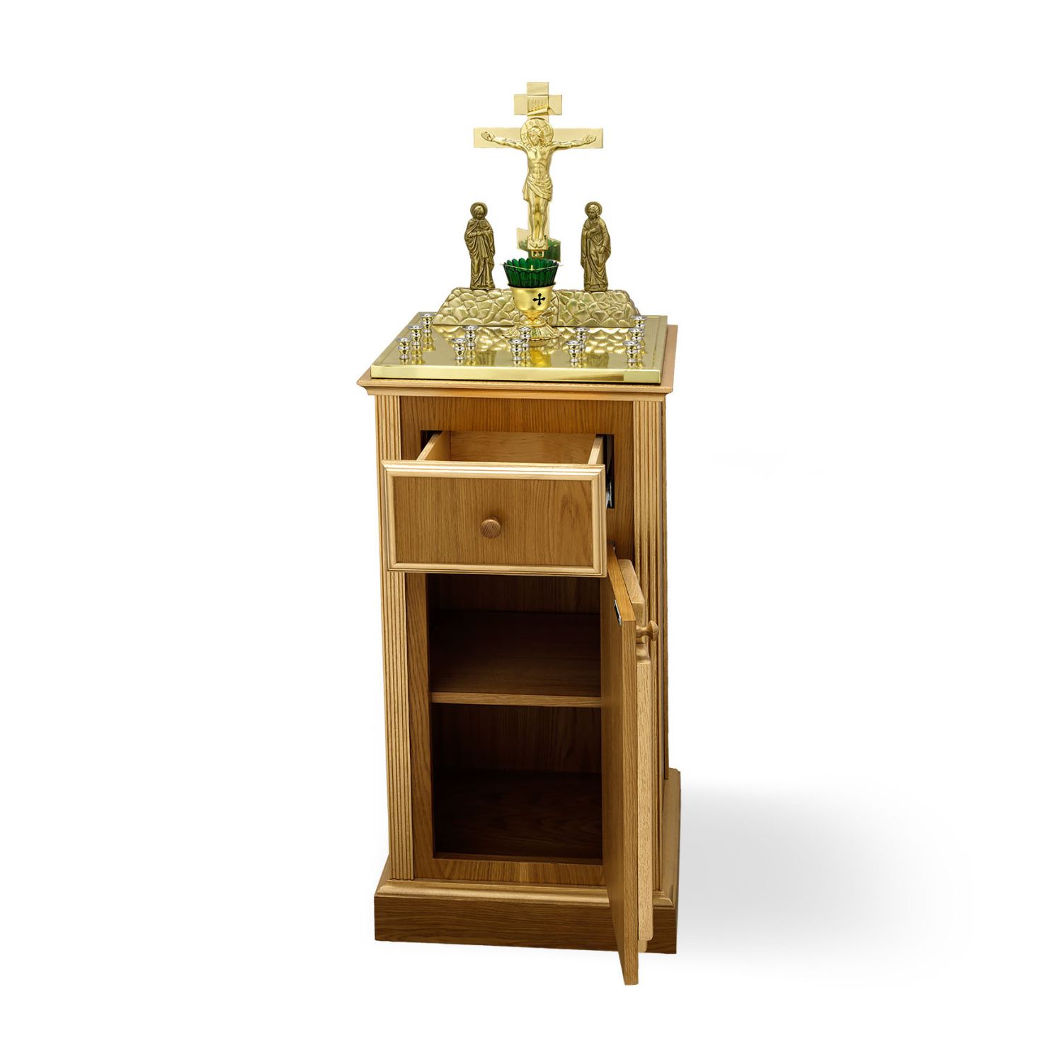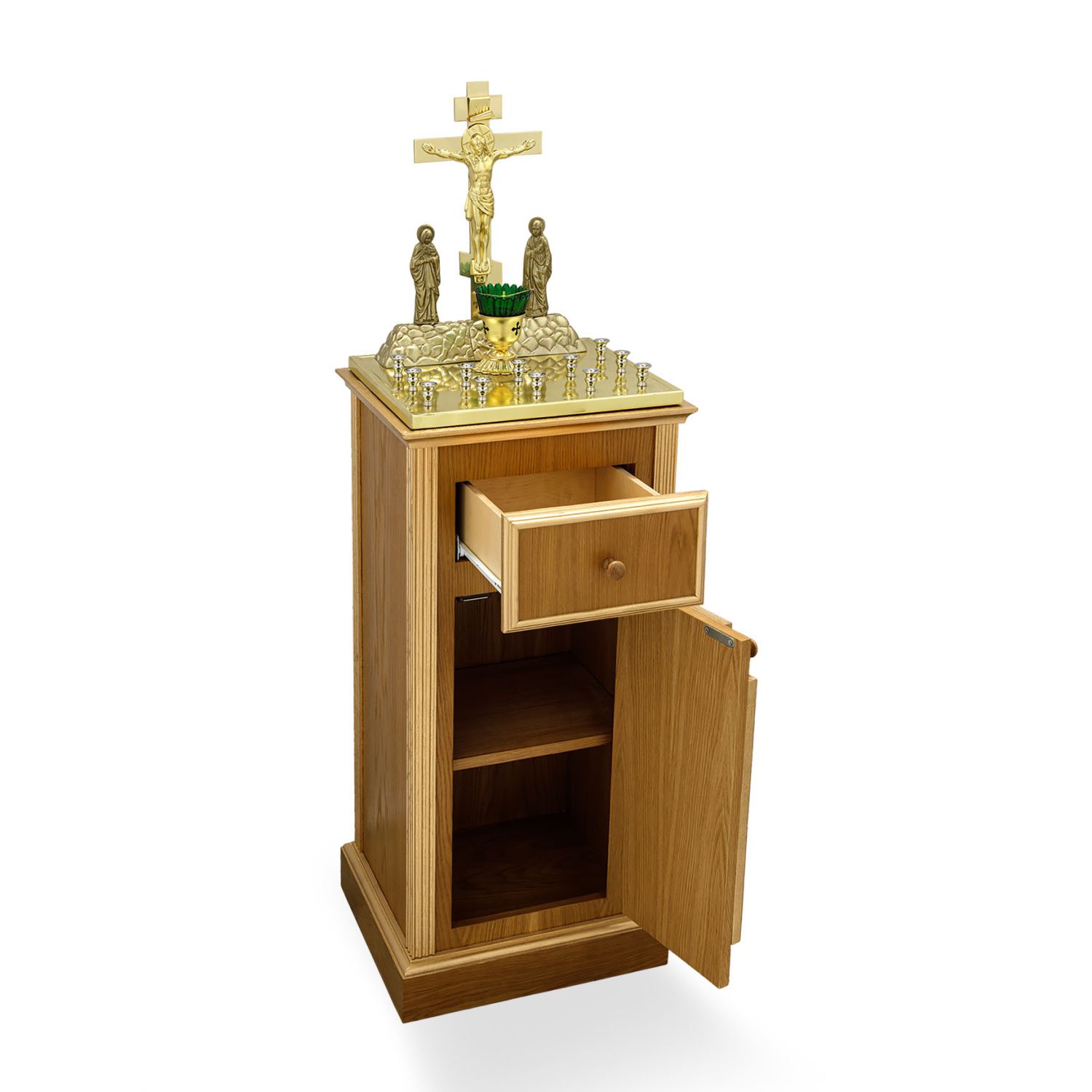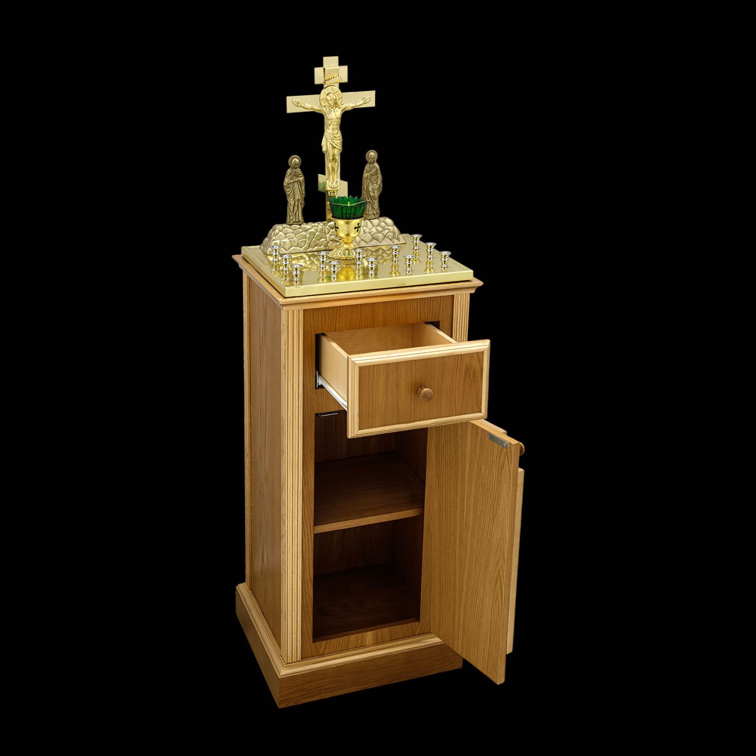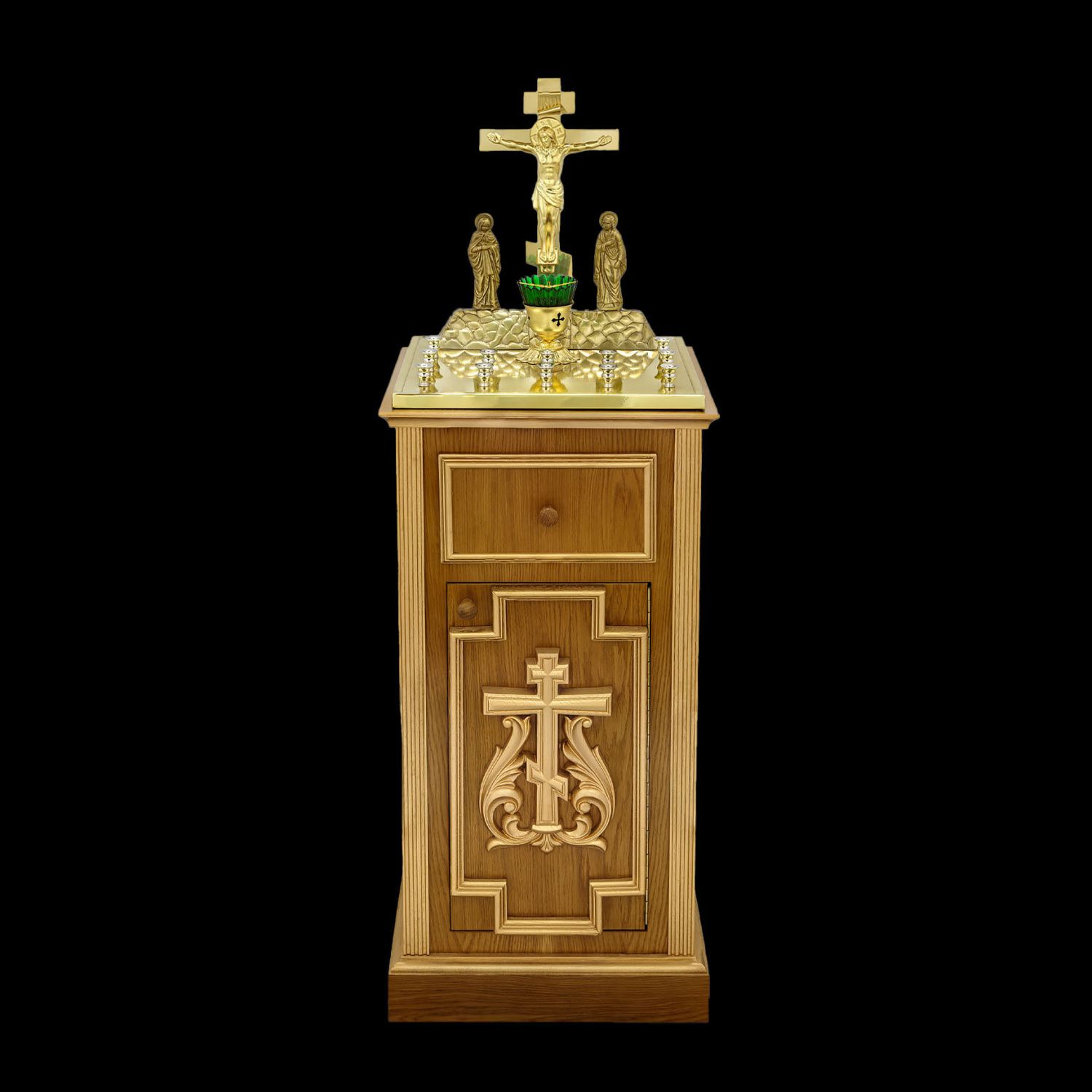 Храмовая мебель по сложности своего производства зачастую не уступает созданию иконостасов. Она должна в полной мере соответствовать своему назначению и быть максимально функциональной. Мебель в храме как таковая играет вспомогательную роль, служа как бы обрамлением внутреннего пространства, но никак не его украшением. Однако стоит учесть что, несмотря на второстепенную роль, мебель должна органично вписывать в окружающий интерьер становясь как бы его дополнением.