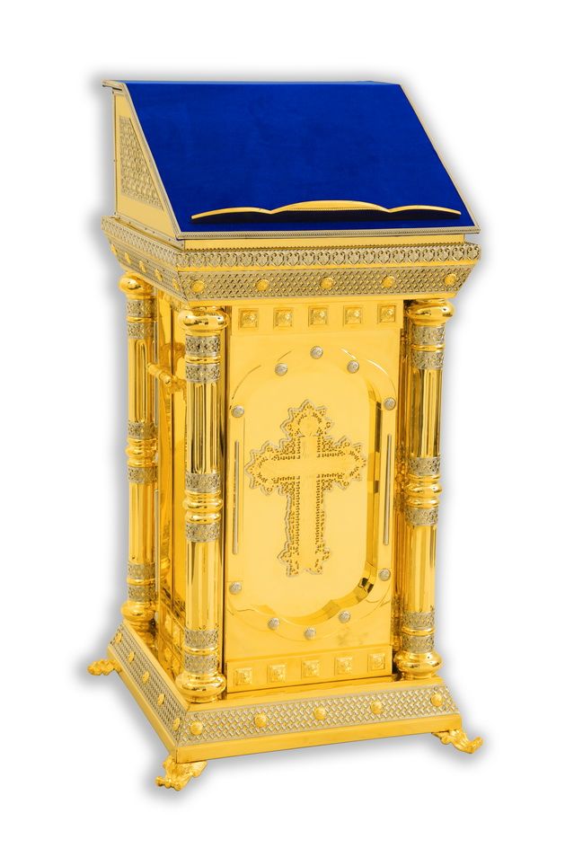 Подставки для иконы №10 с золочением выглядит очень зрелищно, она украшена крестом по середине и колоннами с четырех сторон.