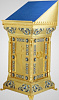 Храмовая мебель по сложности своего производства зачастую не уступает созданию иконостасов. Она должна в полной мере соответствовать своему назначению и быть максимально функциональной. Мебель в храме как таковая играет вспомогательную роль, служа как бы обрамлением внутреннего пространства, но никак не его украшением. Однако стоит учесть что, несмотря на второстепенную роль, мебель должна органично вписывать в окружающий интерьер становясь как бы его дополнением.