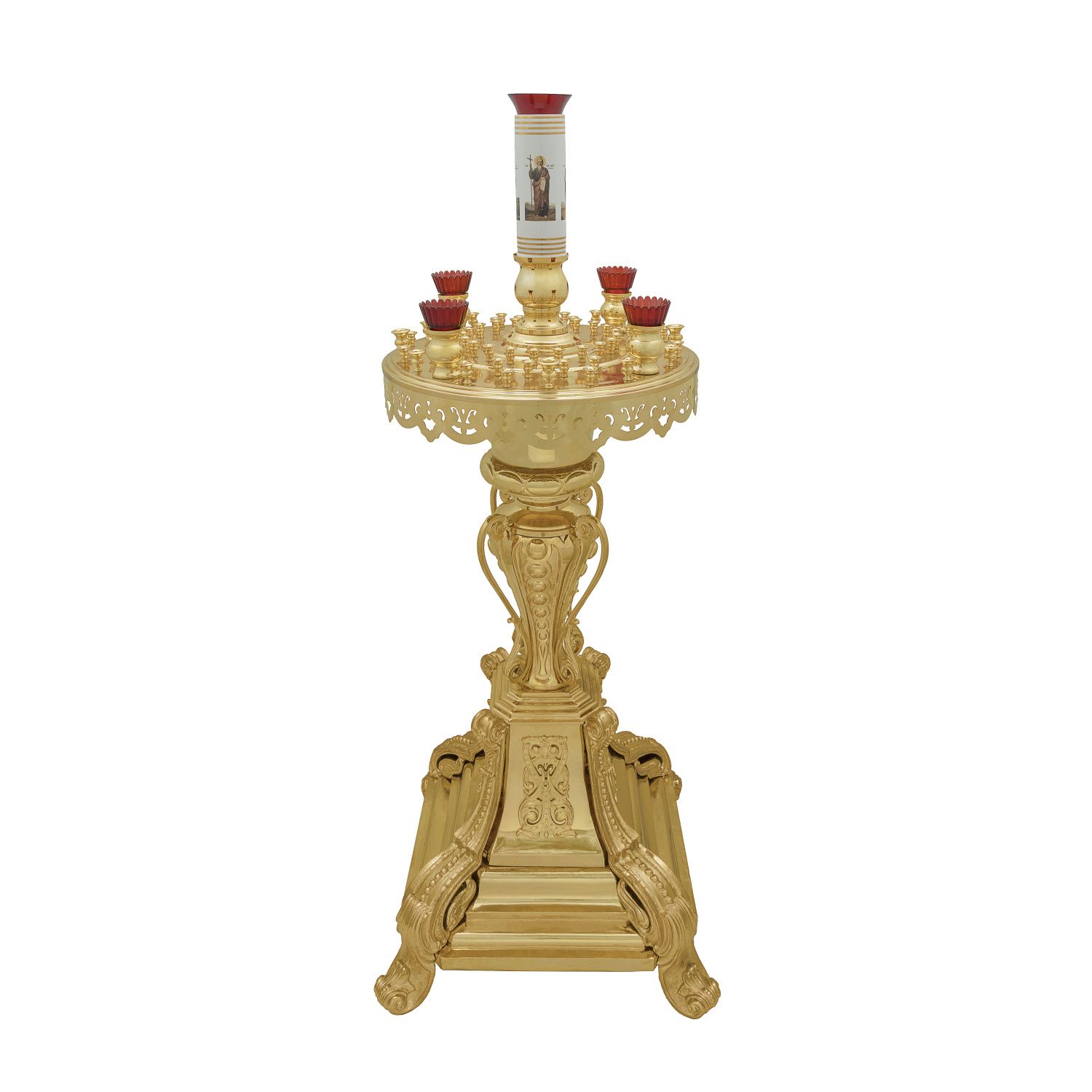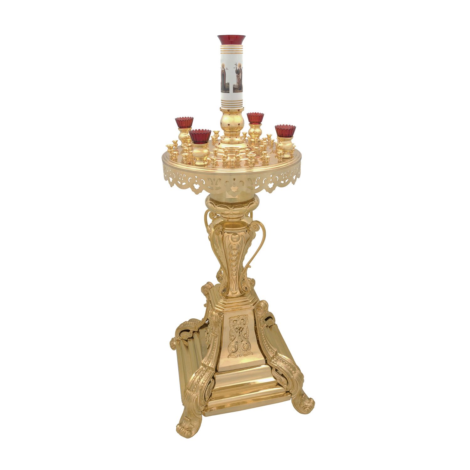 Размерность:шт;Высота, мм:1450;Ширина, мм:745;Длина, мм:не применимо;Диаметр, мм:745;Количество свечей:56;Покрытие:Золочение;Ширина верхнего основания, мм:650;Ширина нижнего основания, мм:745;Вес нетто, кг:89;Материал основной:Латунь;Вес брутто, кг:не применимо;Техника исполнения / отделка:Литьё;Упаковка габариты, СМ (длина/ширина/высота):83 х 83 х 158;Упаковка опт. габариты, СМ (длина/ширина/высота):83 х 83 х 158;Упаковка (вид):Деревянный ящик;Материалы основные:Латунь