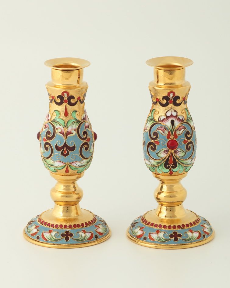 Размерность:шт;Высота, мм:145;Ширина, мм:75;Диаметр, мм:70;Количество свечей:2;Покрытие:Золочение;Вид использования:Напрестольный;Вес нетто, кг:0,24;Вес брутто, кг:0,405;Техника исполнения / отделка:Филигрань, эмаль;Упаковка габариты, СМ (длина/ширина/высота):16 х 8 х 15;Упаковка опт. габариты, СМ (длина/ширина/высота):16 х 8 х 15;Упаковка (вид):Картонная коробка