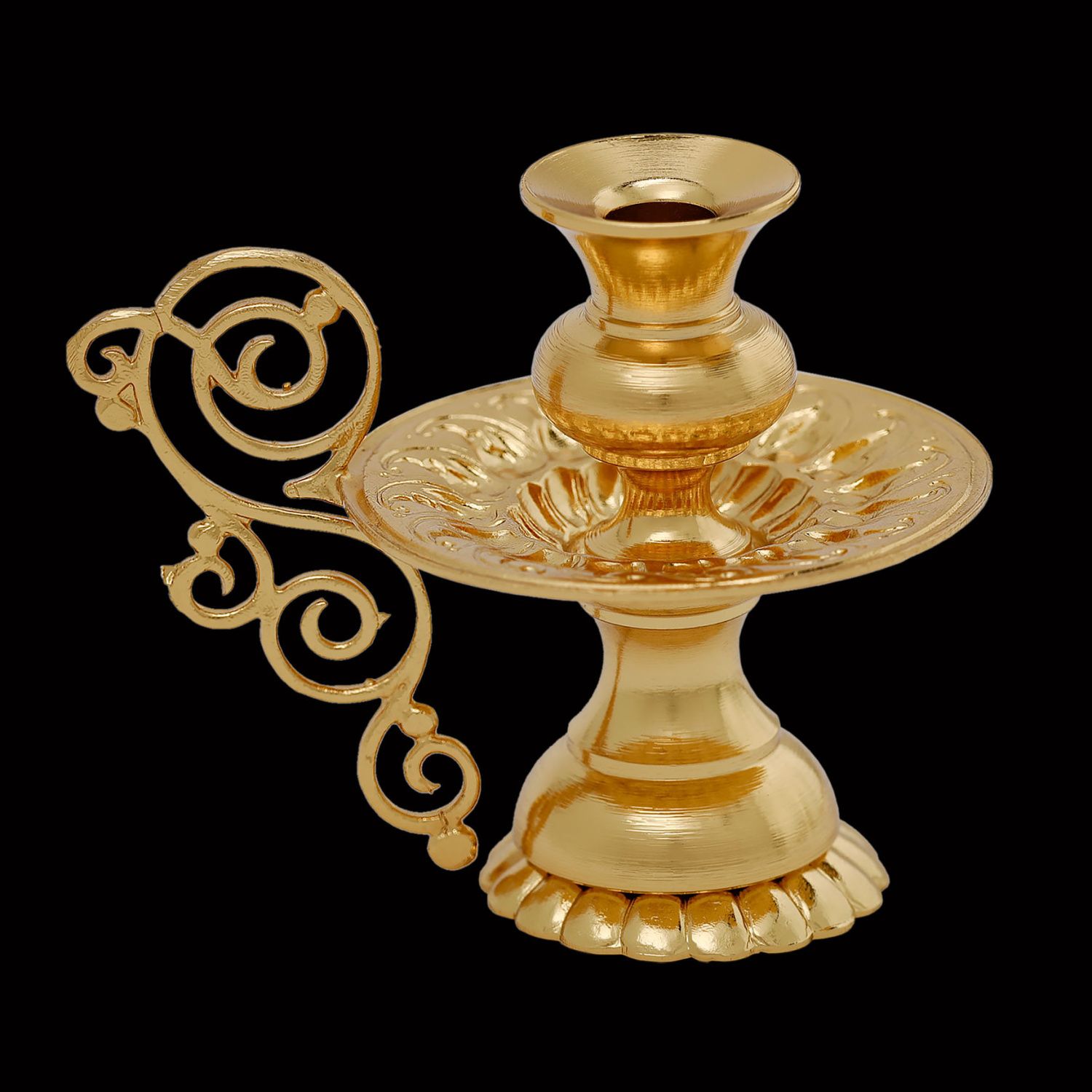 Размерность:шт;Высота, мм:50;Диаметр, мм:40;Количество свечей:1;Покрытие:Золочение;Вид использования:Настольный;Вес нетто, кг:0,050;Вес брутто, кг:0,05;Техника исполнения / отделка:Литьё;Упаковка габариты, СМ (длина/ширина/высота):6,5 х 6 х 5;Упаковка опт. габариты, СМ (длина/ширина/высота):16,5 х 16,5 х 20,5;Упаковка (вид):Астролон;Материалы основные:Латунь