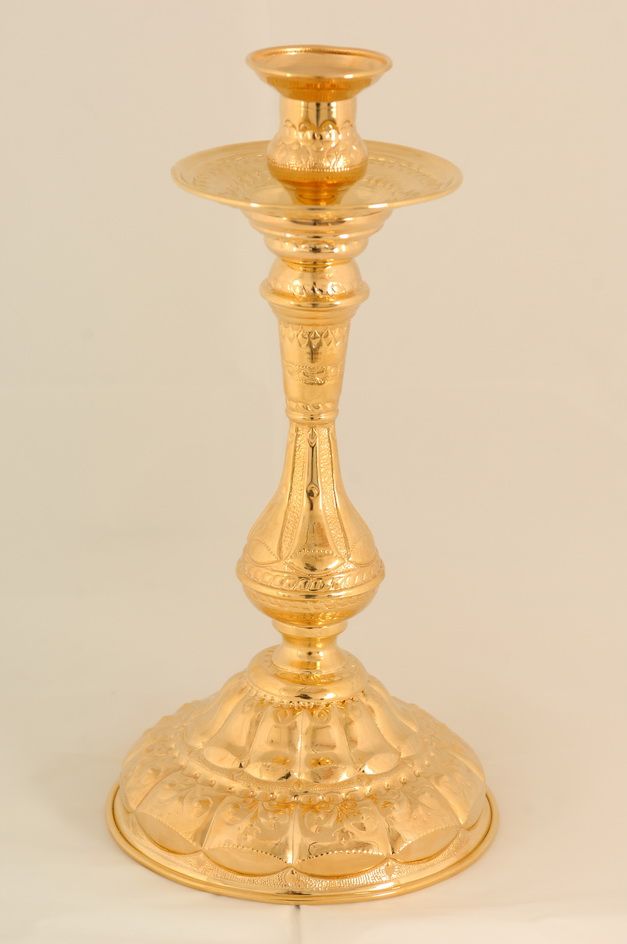 Размерность:шт;Высота, мм:330;Диаметр, мм:170;Количество свечей:1;Покрытие:Золочение;Вид использования:Настольный;Вес нетто, кг:0,5;Вес брутто, кг:0,6;Техника исполнения / отделка:чеканка;Упаковка габариты, СМ (длина/ширина/высота):18 х 18 х 34;Упаковка опт. габариты, СМ (длина/ширина/высота):18 х 18 х 34;Упаковка (вид):Картонная коробка;Материалы основные:Латунь