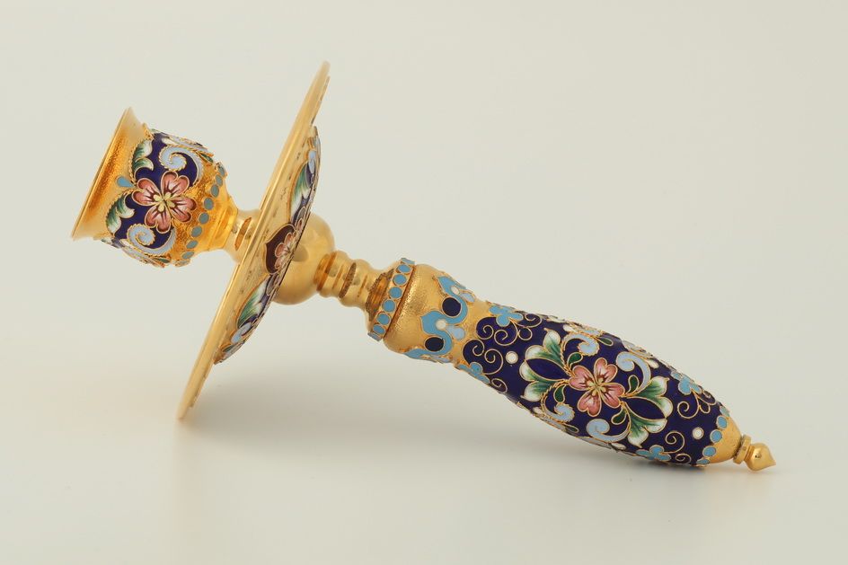 Подсвечник ручной №2 филигрань, эмаль, роспись / золочение