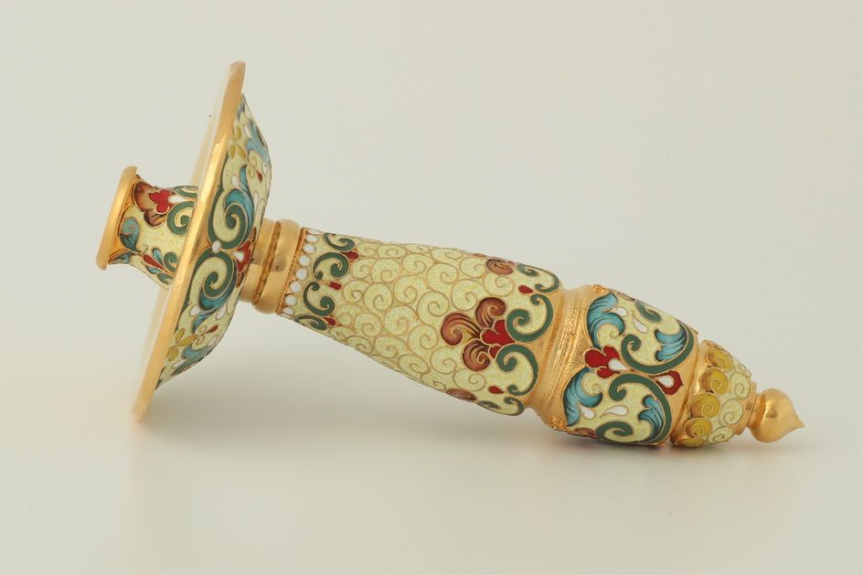 Подсвечник ручной филигрань, эмаль, роспись / золочение