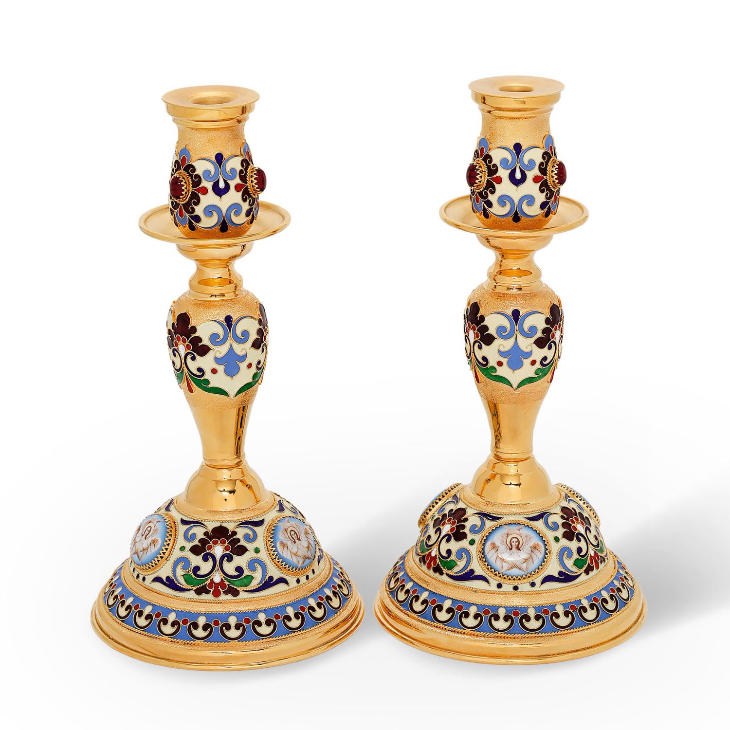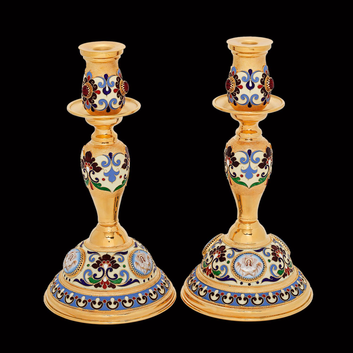 Подсвечник №14 / 2 свечи / эмаль, 6-деколей / золочение