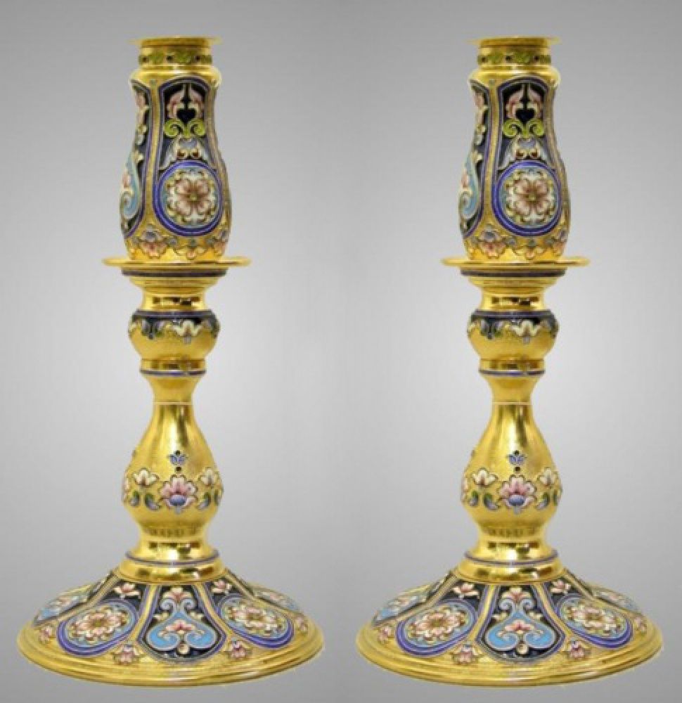 Подсвечник большой №1 / 2 свечи / роспись серебро / золочение / (УИН)