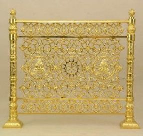 Решетка на солею № 5 с гнутыми калитками (1м) лакированная служит неотъемлемым атрибутом православного алтаря. Важнейшее назначение изысканной решетки на солею содержится в том, чтобы разбить зоны, а также уберечь священные иконы от вандалов. В нашем онлайн магазине вы всегда сможете найти неповторимые ажурные решетки на солею по приятным ценам. В нашем магазине большой ассортимент, при этом ассортимент постоянно пополняется. На страничках нашего каталога вы найдете огромнейшее количество других элементов оформления современного церковного храма!