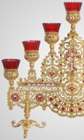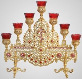 Семисвечник напрестольный №4 выпиловка гравировка камни золочение