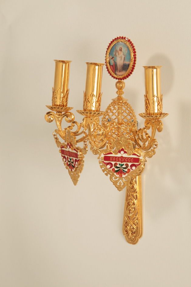 Трехсвечник пасхальный на яйце №2 золочение эмаль