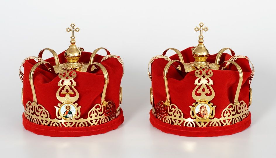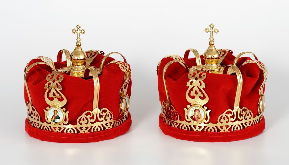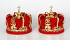 Роскошное изделие. Венцы для жениха и невесты, выполненные специально для таинства венчания. Материал: золото, латунь и текстиль. Очень красивые и действительно праздничные венцы, именно такие нужны для так