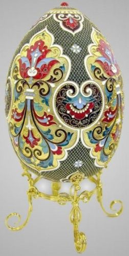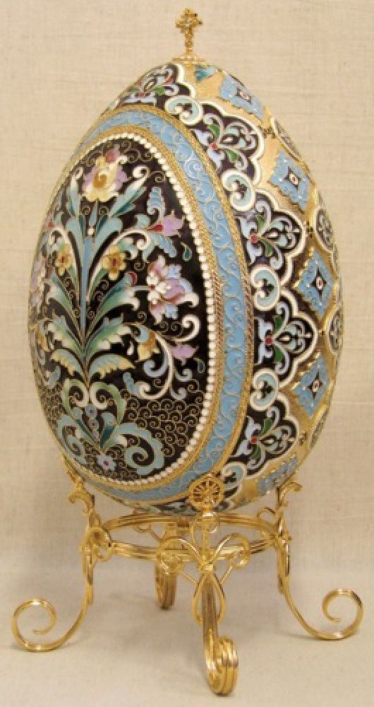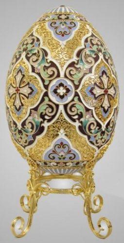 Яйцо пасхальное большое неоткрывающиеся на подставке №4 эмаль / золочение