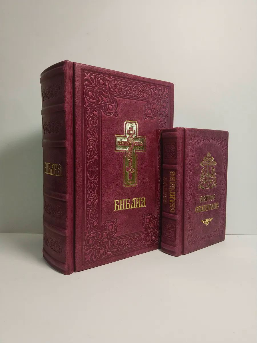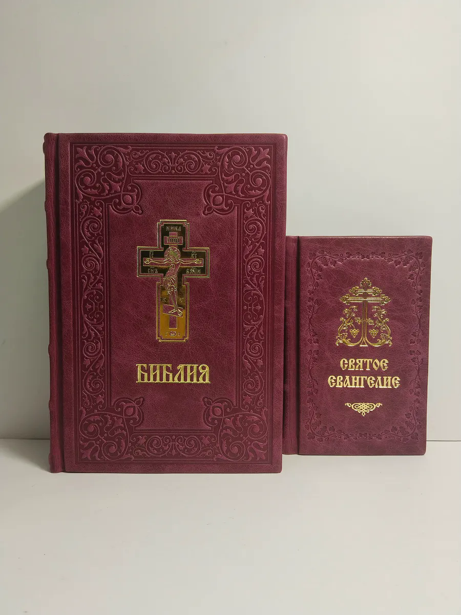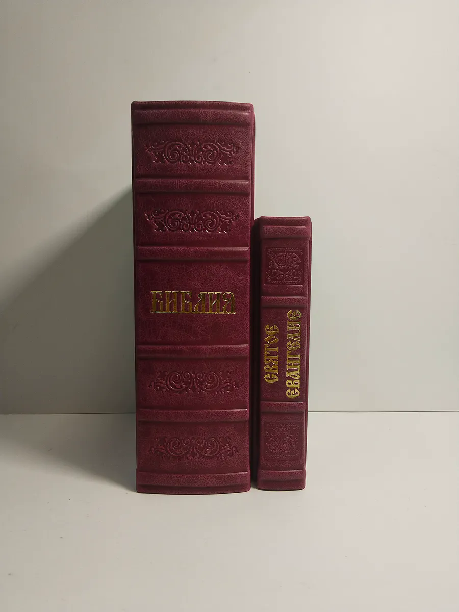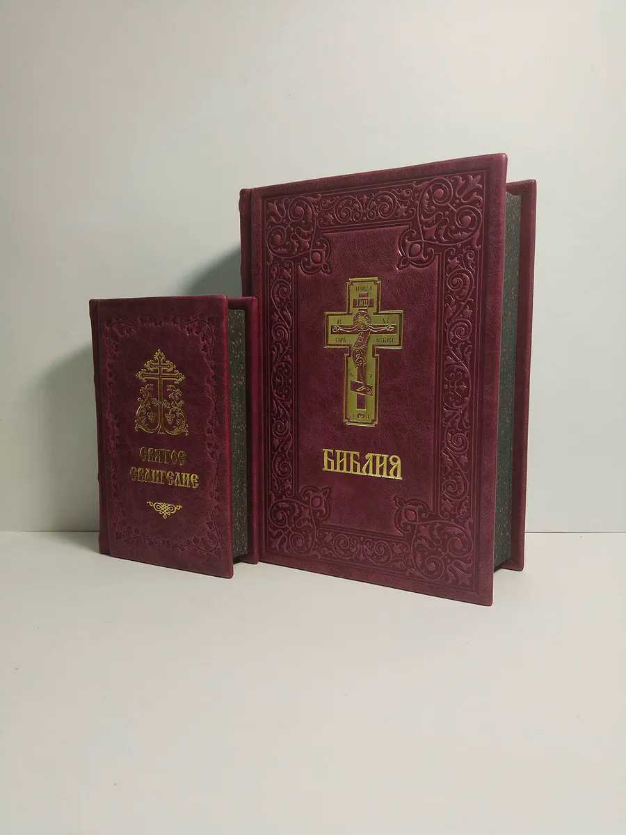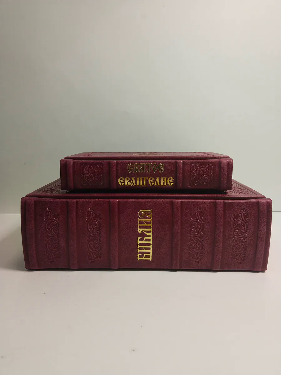 Подарочный набор книг в кожаном переплете: Библия 03.10 и Евангелие 09.35 цвет бордовый
