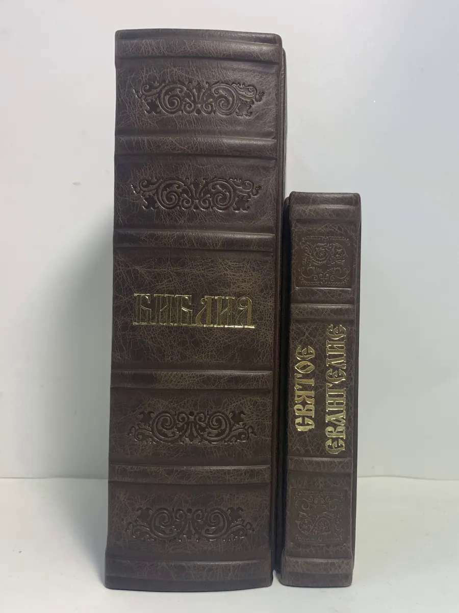 Каждый экземпляр – это результат кропотливой работы мастеров, создающих долговечные произведения искусства. Кожаный переплет защищает страницы от времени, а золотое тиснение придает книгам особую торжественность. Читайте и перечитывайте эти важные тексты, наслаждаясь тактильными ощущениями от прикосновения к натуральной коже и ощущая связь с многовековой историей. "Библия" и "Евангелие" в кожаном переплете – это инвестиция в духовное наследие и изысканный предмет интерьера, который будет передаваться из поколения в поколение. Откройте для себя красоту веры и мастерства в каждой странице.