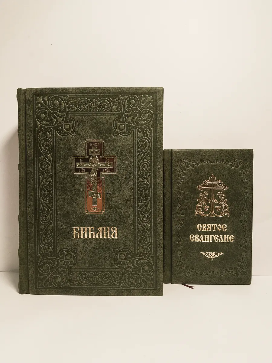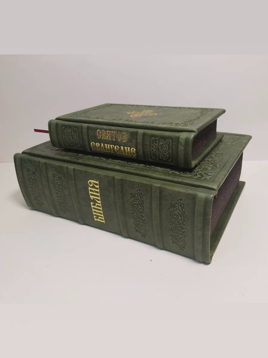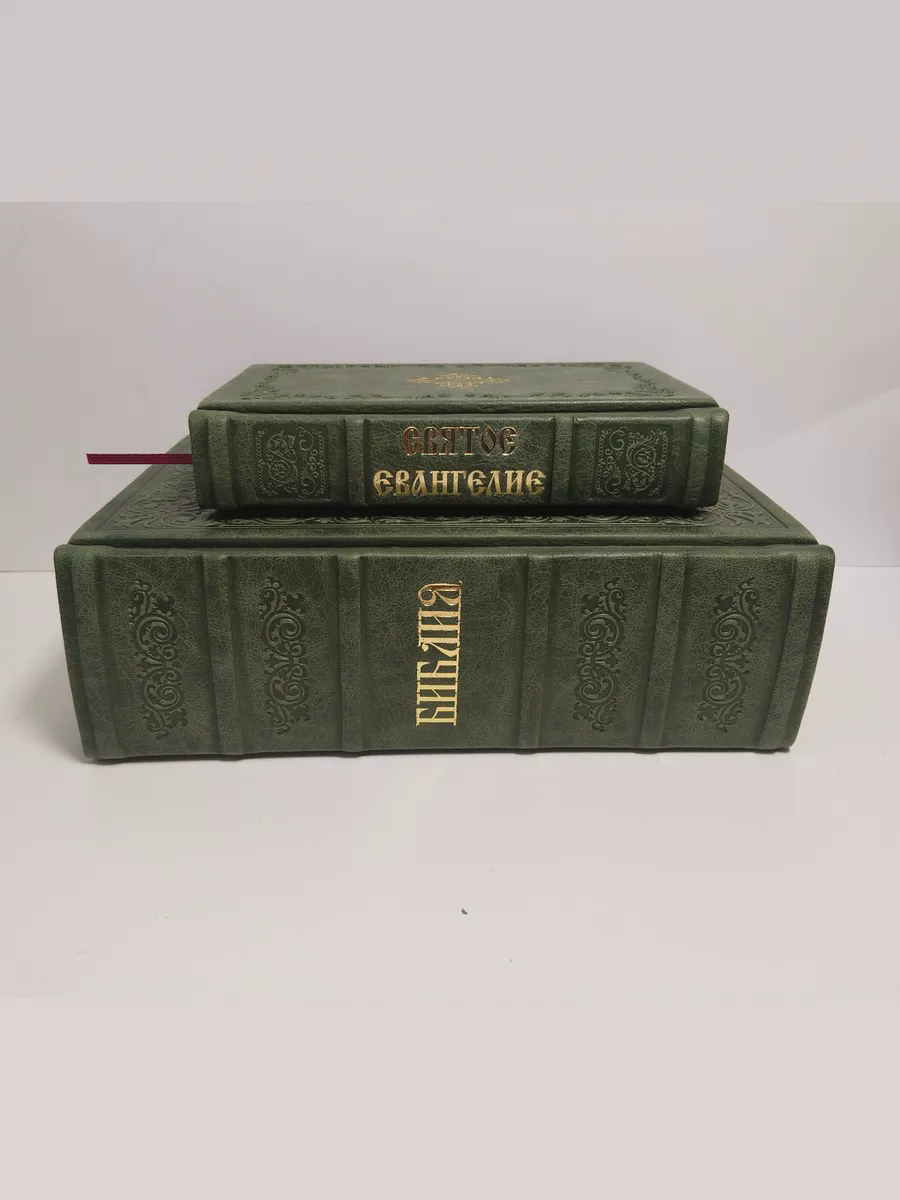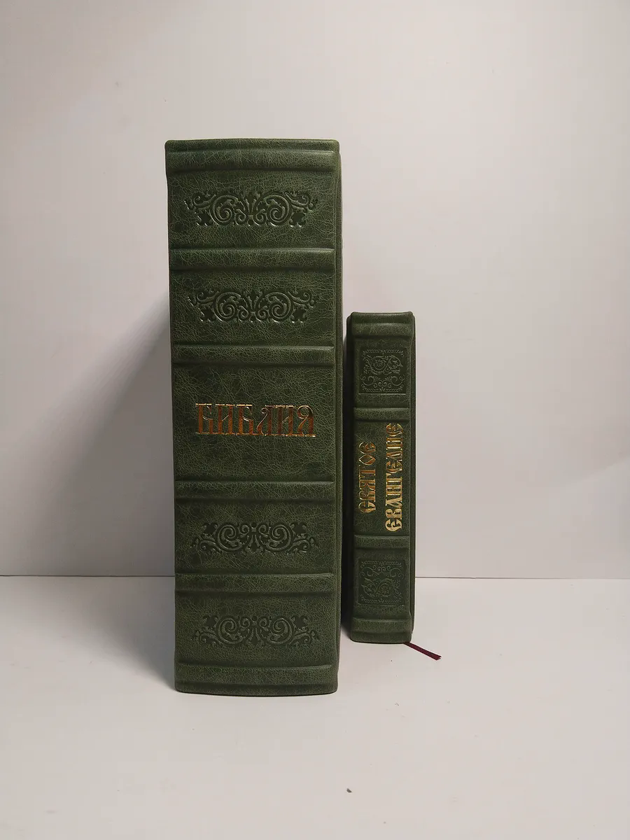 Приобретите "Книги в кожаном переплете: Библия и Евангелие цвет зеленый" и обогатите свою жизнь вечными ценностями, заключенными в прекрасную и долговечную форму. Идеальный выбор для тех, кто ценит красоту, духовность и высокое качество.