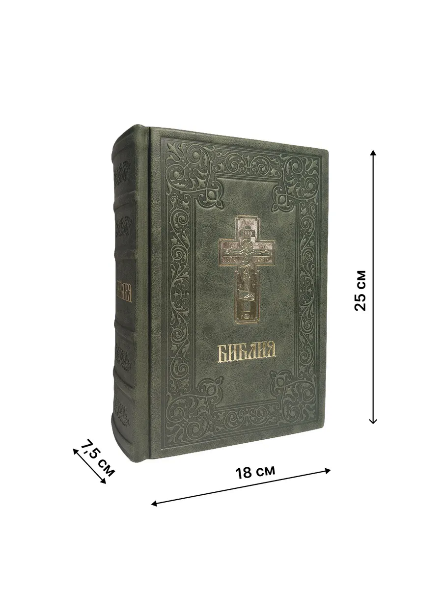 Подарочный набор книг в кожаном переплете: Библия 03.10 и Евангелие 09.35 цвет зеленый