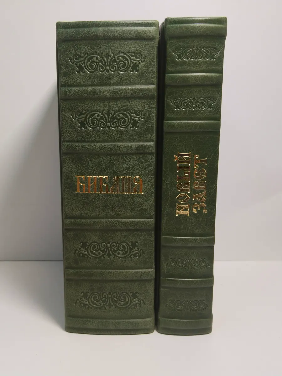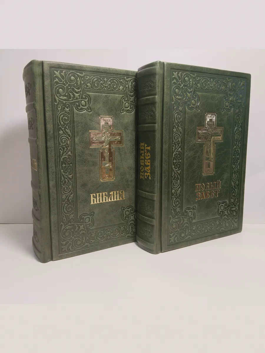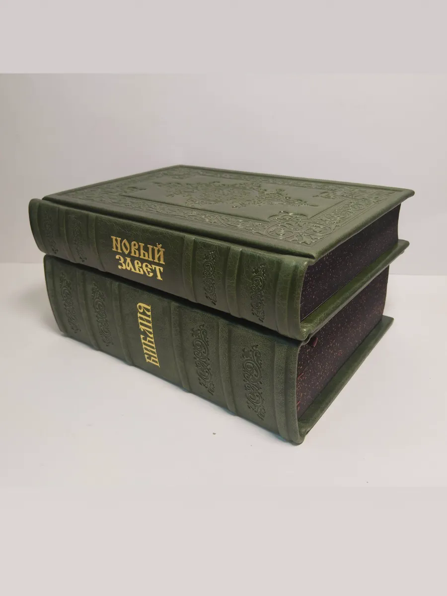 "Книги в кожаном переплете: Библия и Новый Завет зеленый" станет не только источником мудрости и веры, но и украшением вашей библиотеки, передаваясь из поколения в поколение как семейная реликвия. Откройте для себя вечные истины в достойном обрамлении.