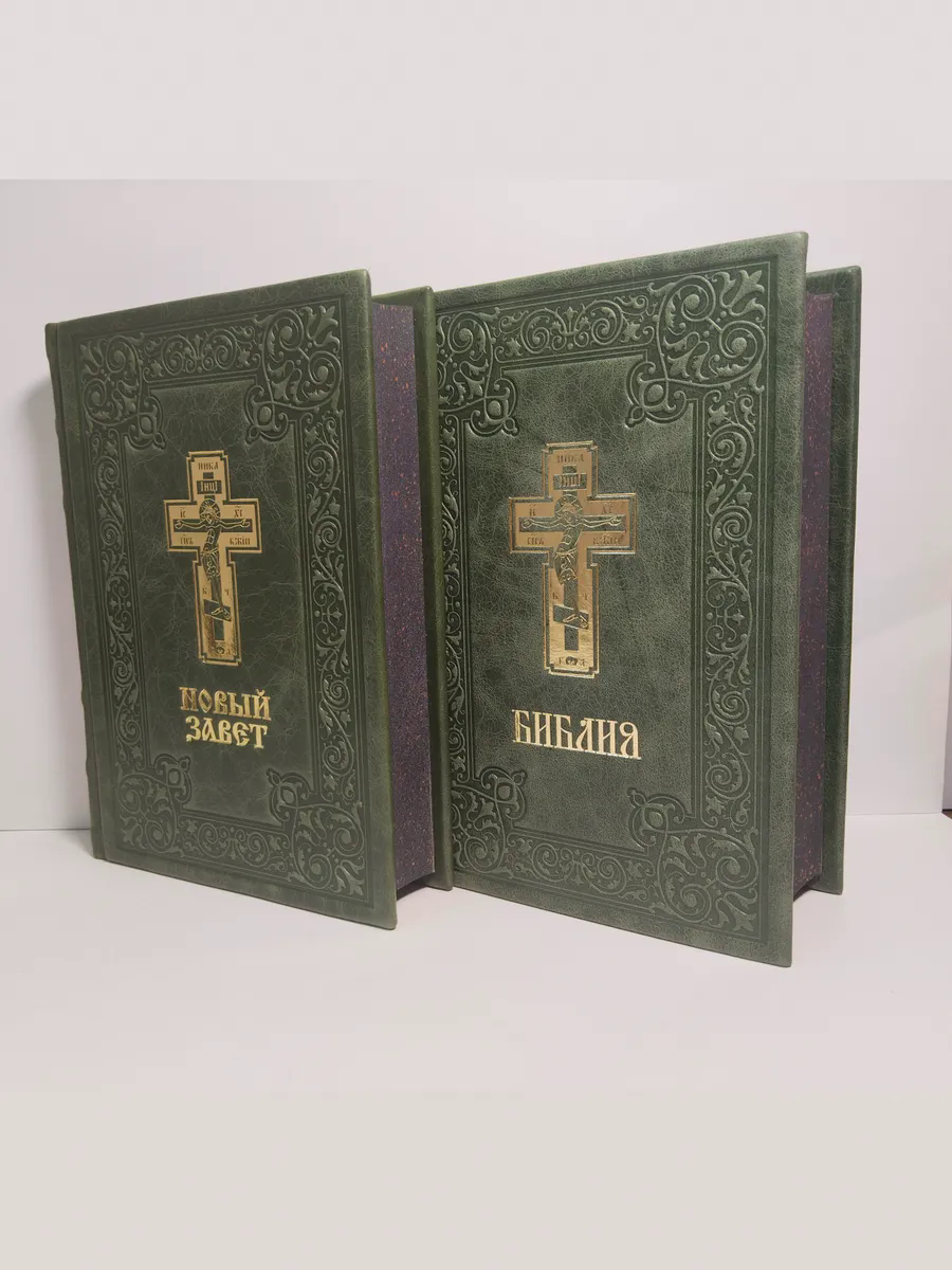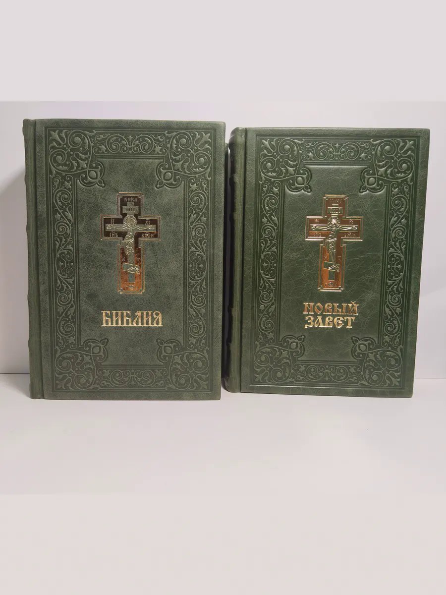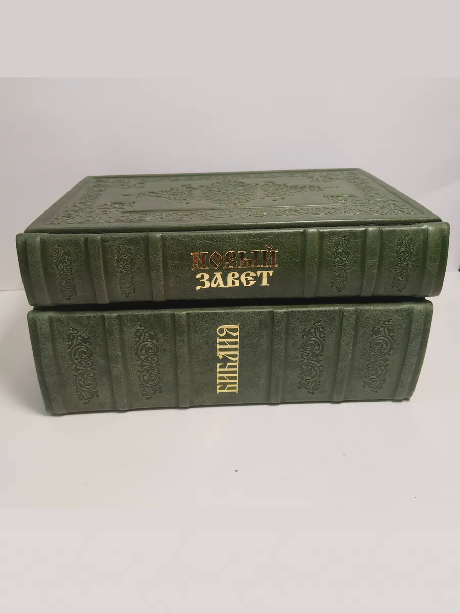 "Книги в кожаном переплете: Библия и Новый Завет зеленый" станет не только источником мудрости и веры, но и украшением вашей библиотеки, передаваясь из поколения в поколение как семейная реликвия. Откройте для себя вечные истины в достойном обрамлении.