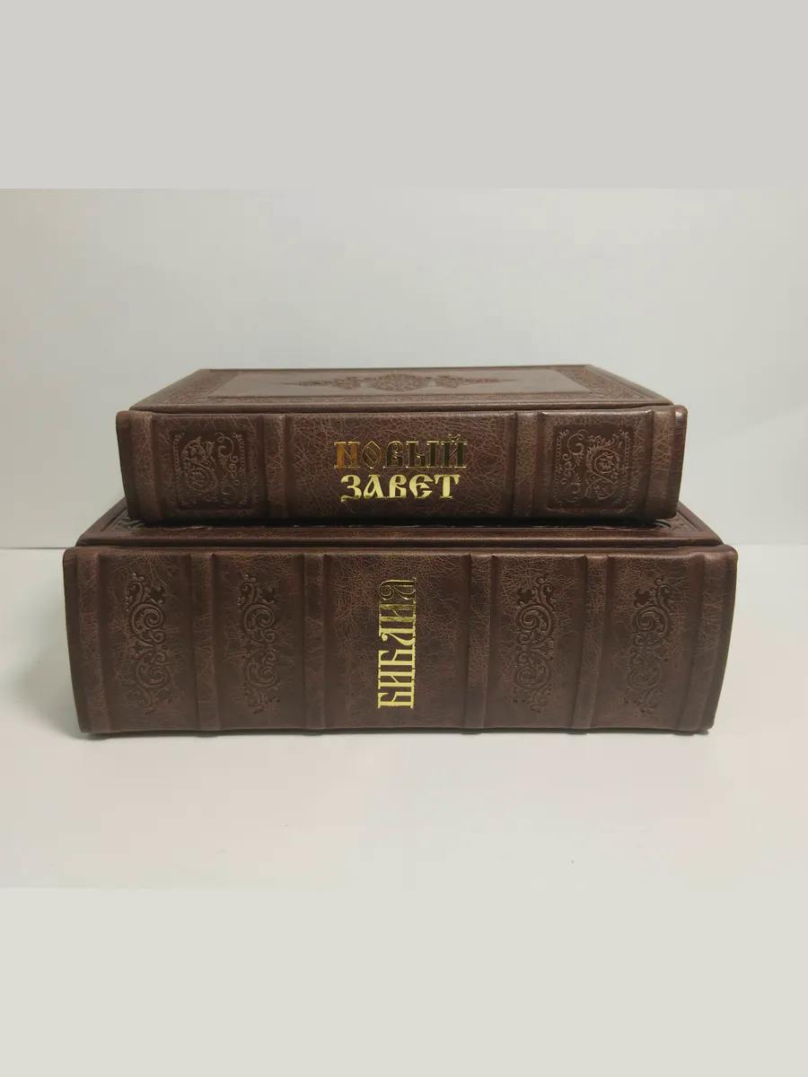 Подарочный набор книг в кожаном переплете: Библия 03.10 и Новый Завет 07.17 темно-коричневый