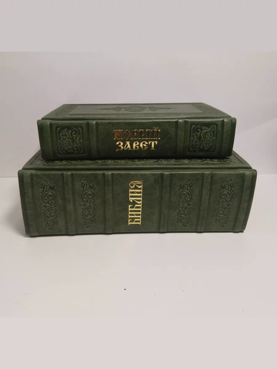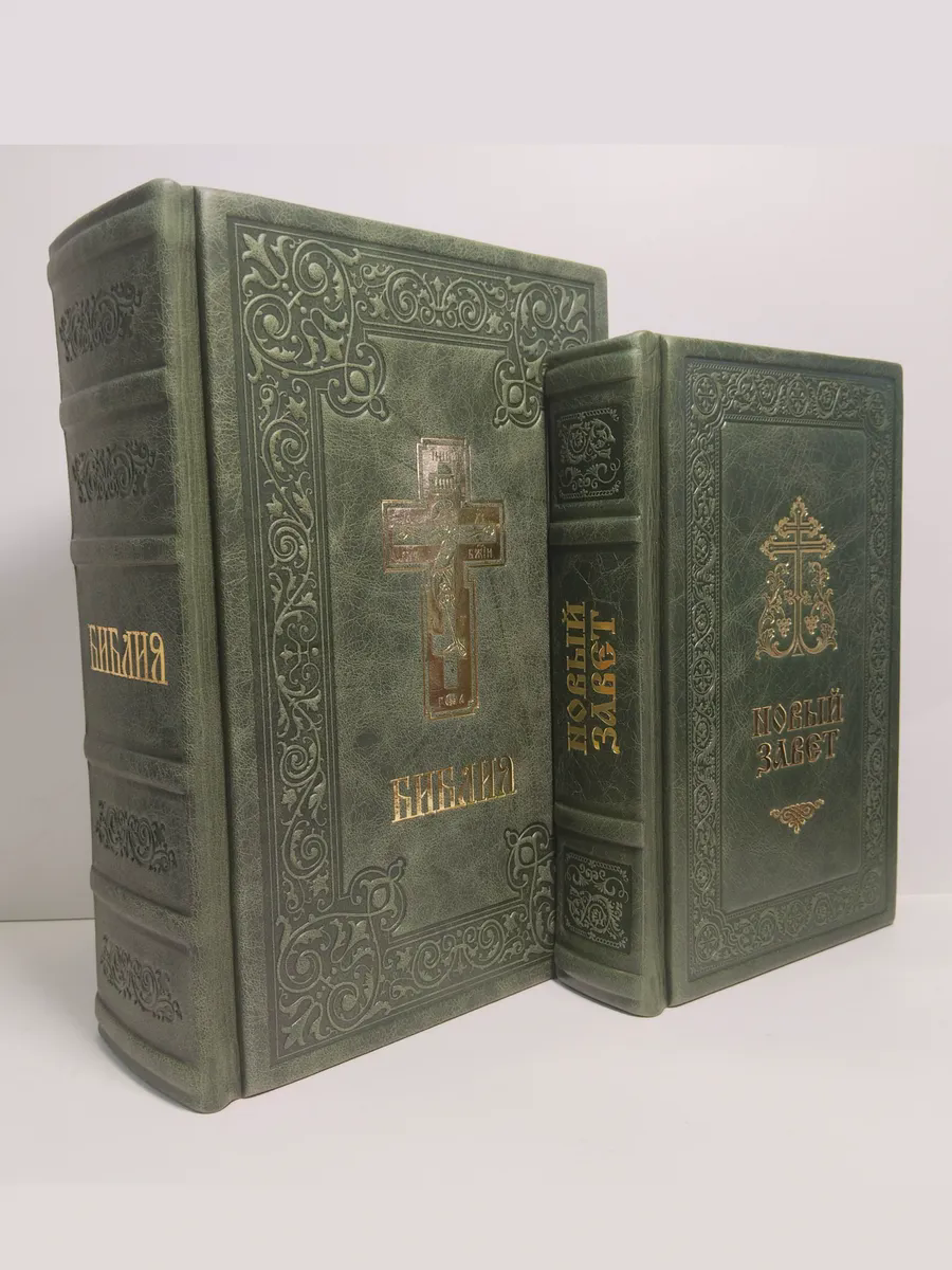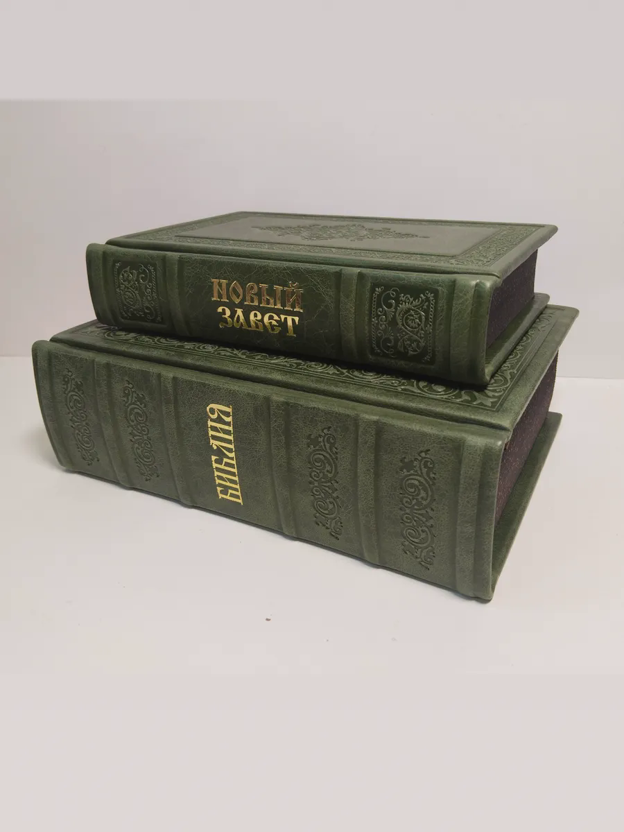 "Книги в кожаном переплете: Библия и Новый Завет зеленый" станет не только источником мудрости и веры, но и украшением вашей библиотеки, передаваясь из поколения в поколение как семейная реликвия. Откройте для себя вечные истины в достойном обрамлении.