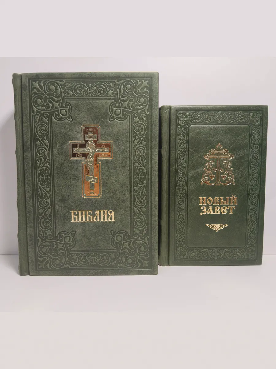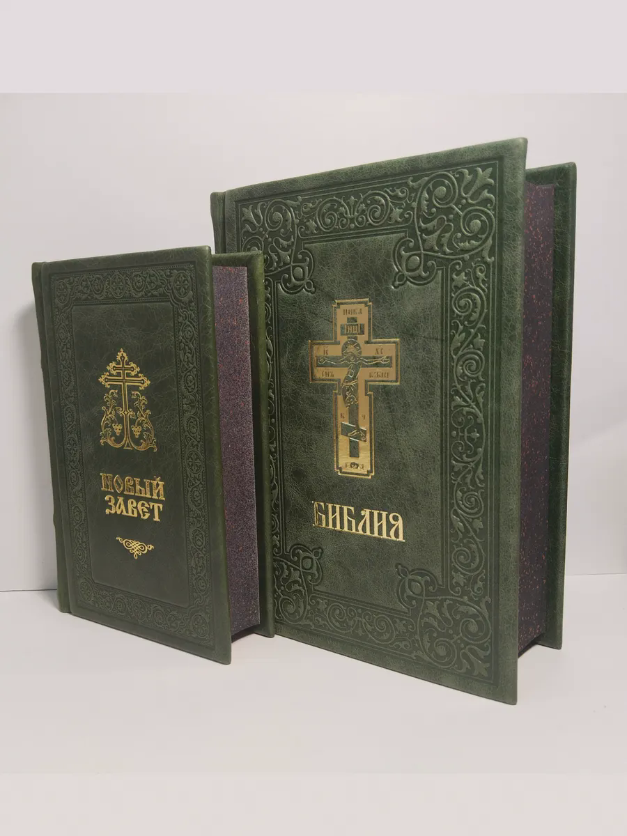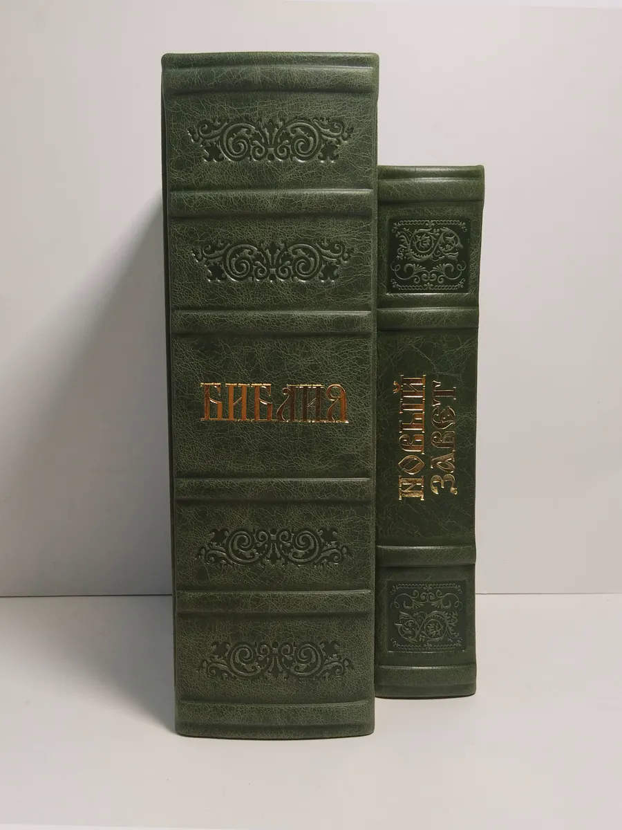 "Книги в кожаном переплете: Библия и Новый Завет зеленый" станет не только источником мудрости и веры, но и украшением вашей библиотеки, передаваясь из поколения в поколение как семейная реликвия. Откройте для себя вечные истины в достойном обрамлении.