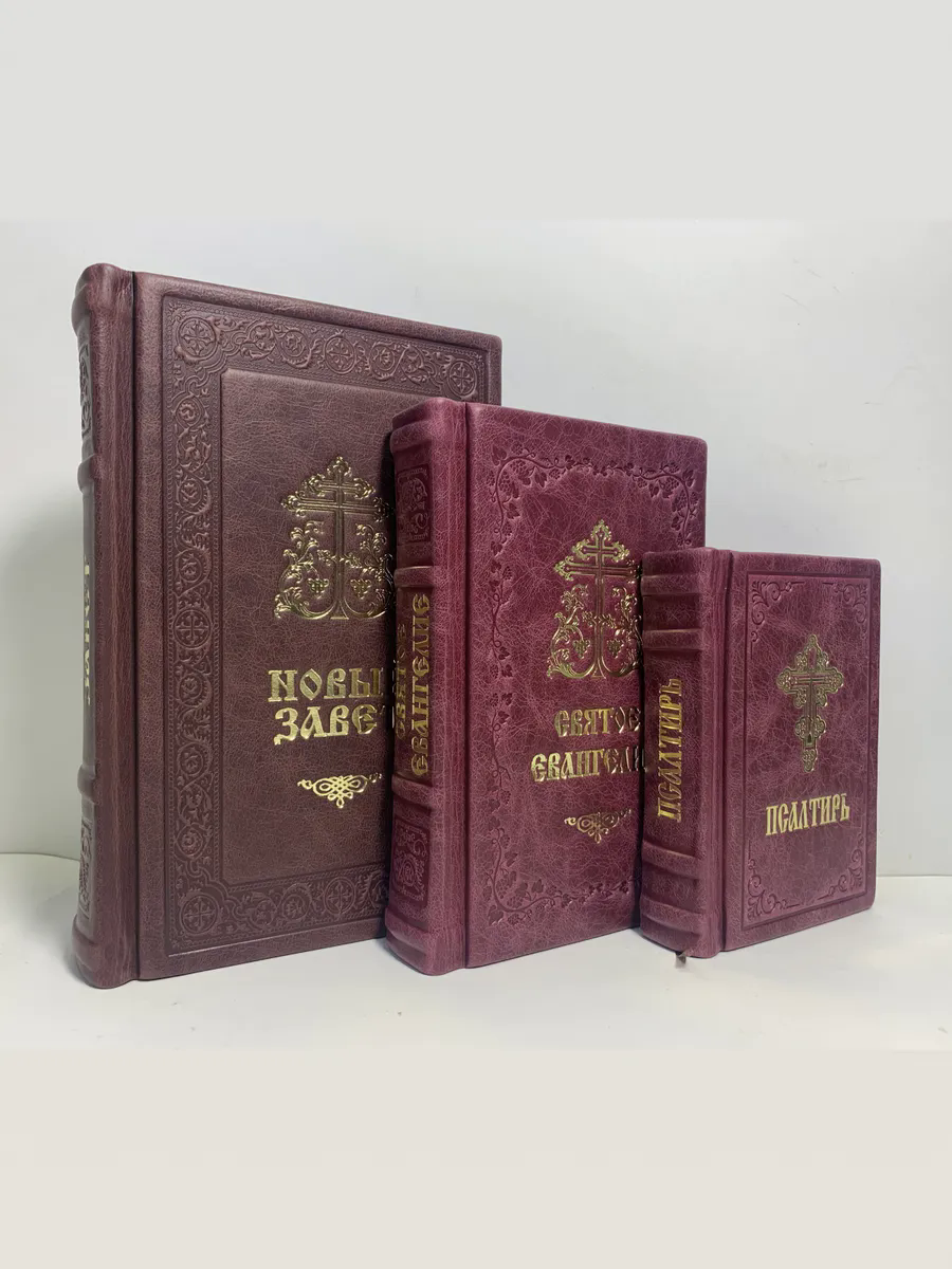 Подарочный набор книг в кожаном переплете: Новый Завет 07.17, Евангелие 09.35 и Псалтирь 08.03 цвет