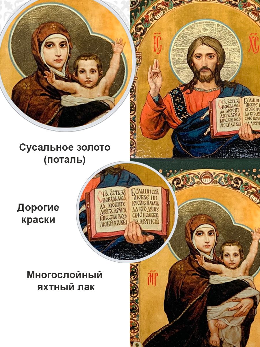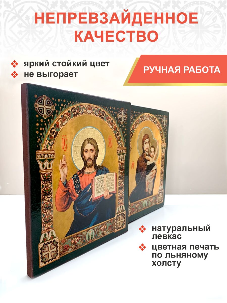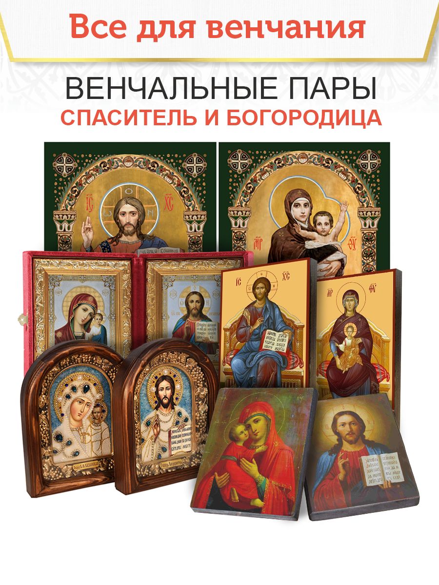 Иконой Божией Матери благославляют невесту, как верную жену и заботливую мать , иконой Спасителя благославляют жениха, как заступника и защитника своей семьи. Перед иконами они дают обеты – быть верными друг другу, проявлять любовь и жить в соответствии с Божьими заповедями, а также воспитывать своих детей в православной вере. После свадьбы венчальная пара сохраняется в семье и может быть передана по наследству из поколения в поколение, становясь основой домашнего иконостаса. Поэтому необходимо обратить особое внимание на качество выбираемых икон. Венчальная пара может быть подарена родителями, крестной матерью, близкими родственниками, братьями и сестрами, друзьями. После покупки венчальной пары, рекомендуем обратиться к священнику православного храма для освящения вновь приобретенных образов. В нашем православном магазине ПравЖизнь можно выбрать и купить любую утварь для венчания: венчальные и свадебные свечи, рушники, полотенца. Венчальная икона - идеальный подарок на свадьбу не только молодоженам, ее можно преподнести также на именины, годовщину, день рождения, а также церковные праздники. Сделайте ваше венчание по-настоящему особенным и запоминающимся с помощью этой великолепной венчальной пары с Казанской Богоматерью и Спасителем. Более 10 лет ПравЖизнь занимается производством и продажей православных товаров для домашнего использования и обустройства храмов. В нашей собственной мастерской мы создаем продукцию, которая пользуется большим спросом у наших покупателей. Многие из них возвращаются к нам снова, доверяя качеству и уникальности наших изделий. Для того, чтобы ознакомиться с нашим ассортиментом нажмите на картинку торгового наименования ПравЖизнь в карточке товара. Добавляйте нас в «Любимые бренды», нажав на сердечко, чтобы не пропустить наши новинки. Милости и помощи Божией вам во всем! Ждем вас снова!