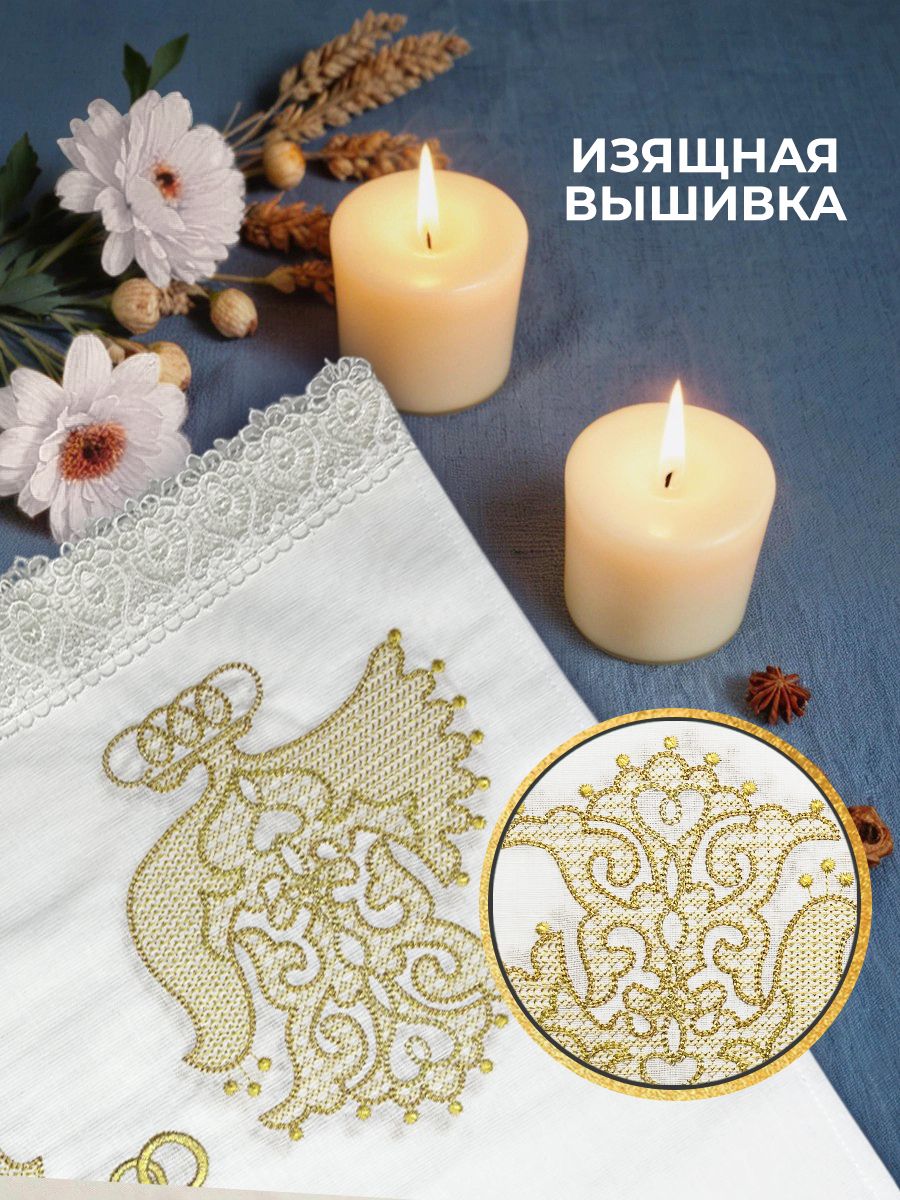 016 Рушник свадебный для венчания хохлома с большими птицами золотой