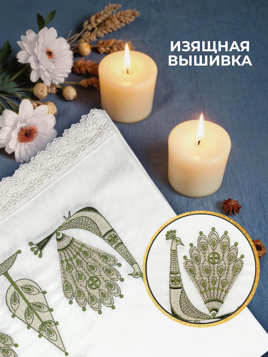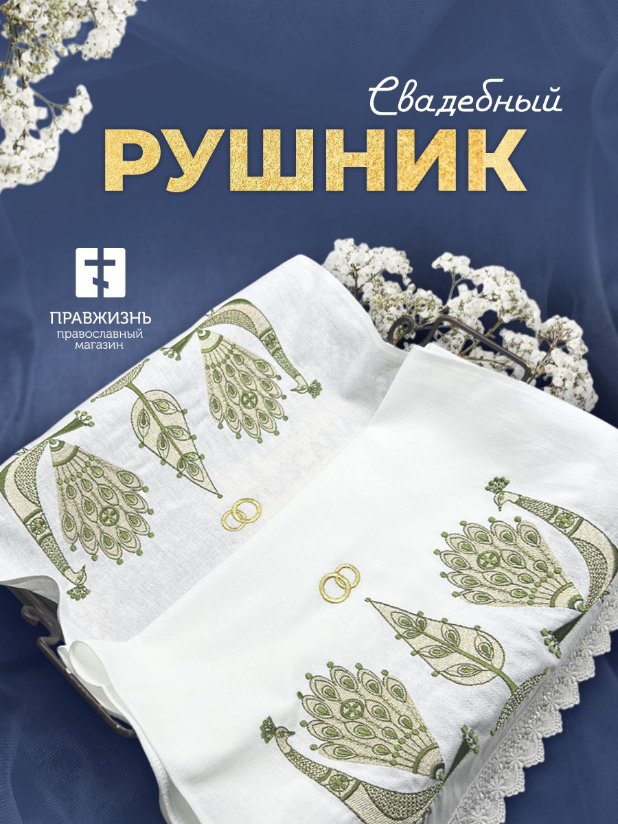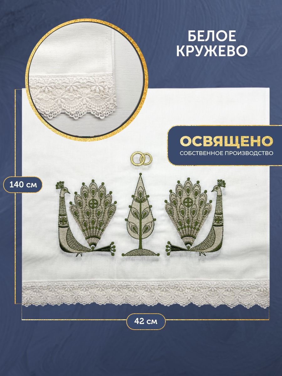 021 Рушник венчальный с зелеными павлинами