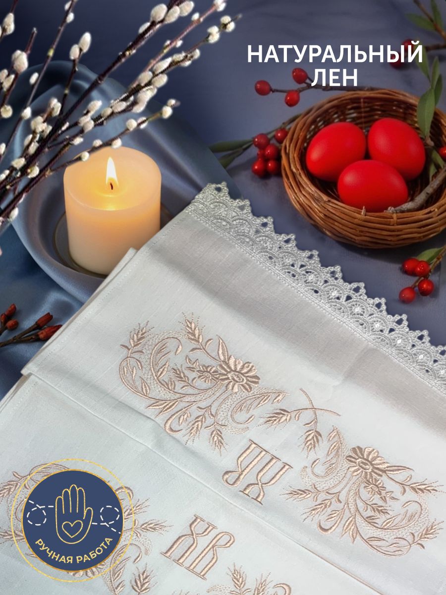 Рушник пасхальный ХВ с ромашками розовый 42,5х140 см