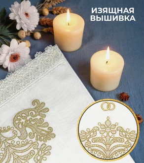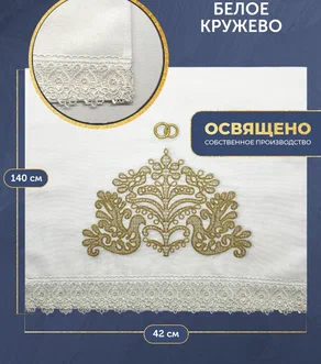 Рушник свадебный для венчания маленькие птицы золотой 42,5х140 см