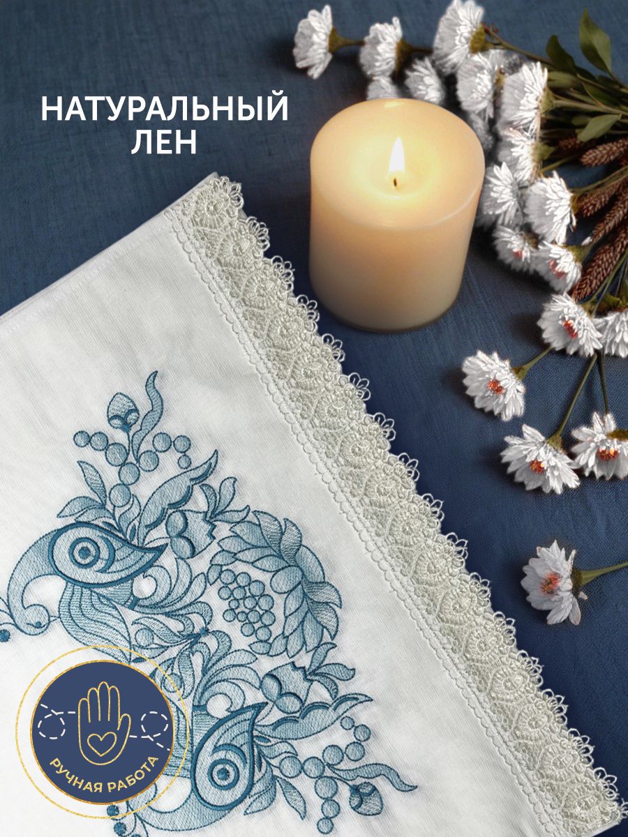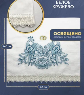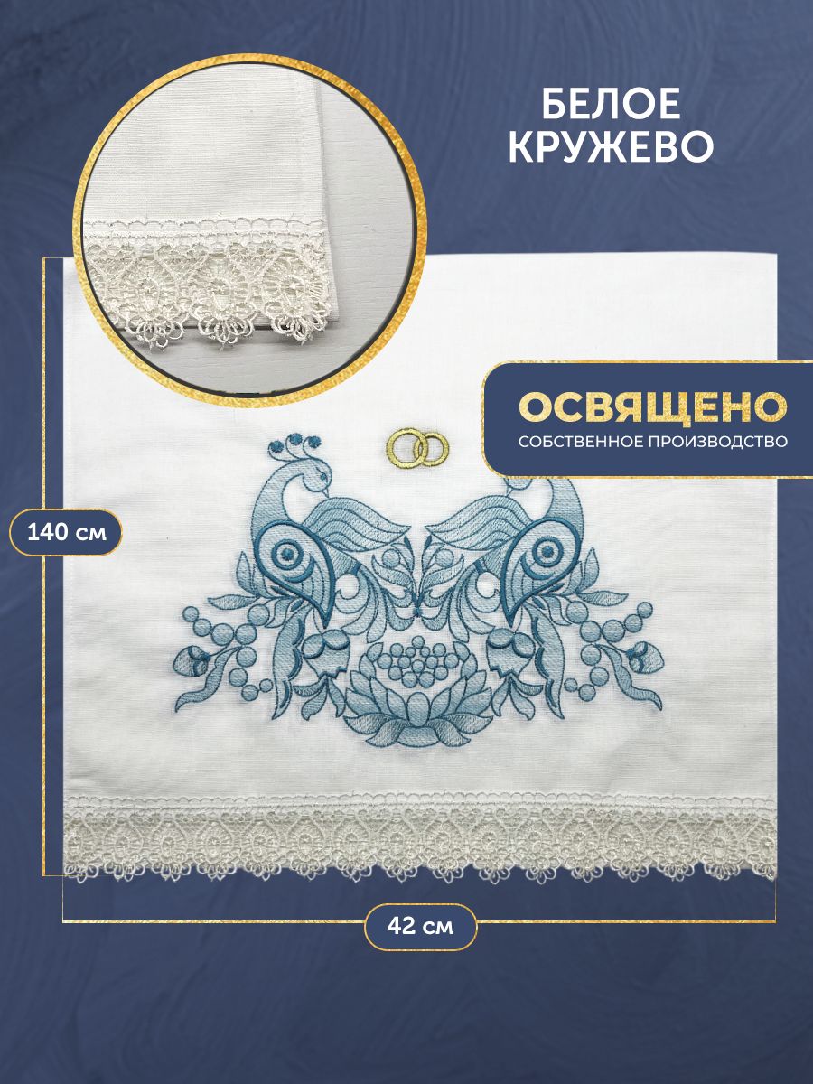 Рушник свадебный для венчания узор с синими птицами 42,5х140 см