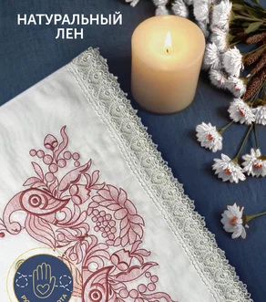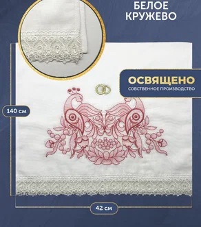Рушник венчальный народный узор с красными птицами 42,5х140 см
